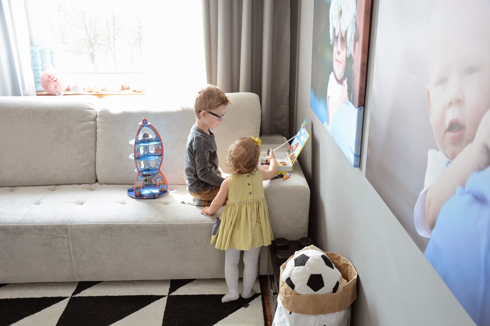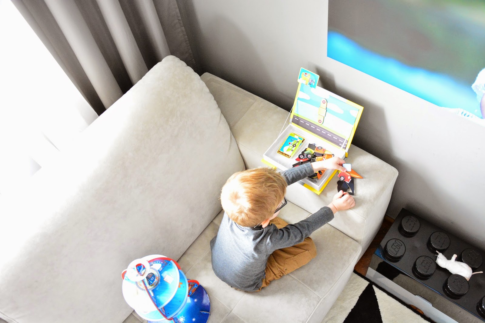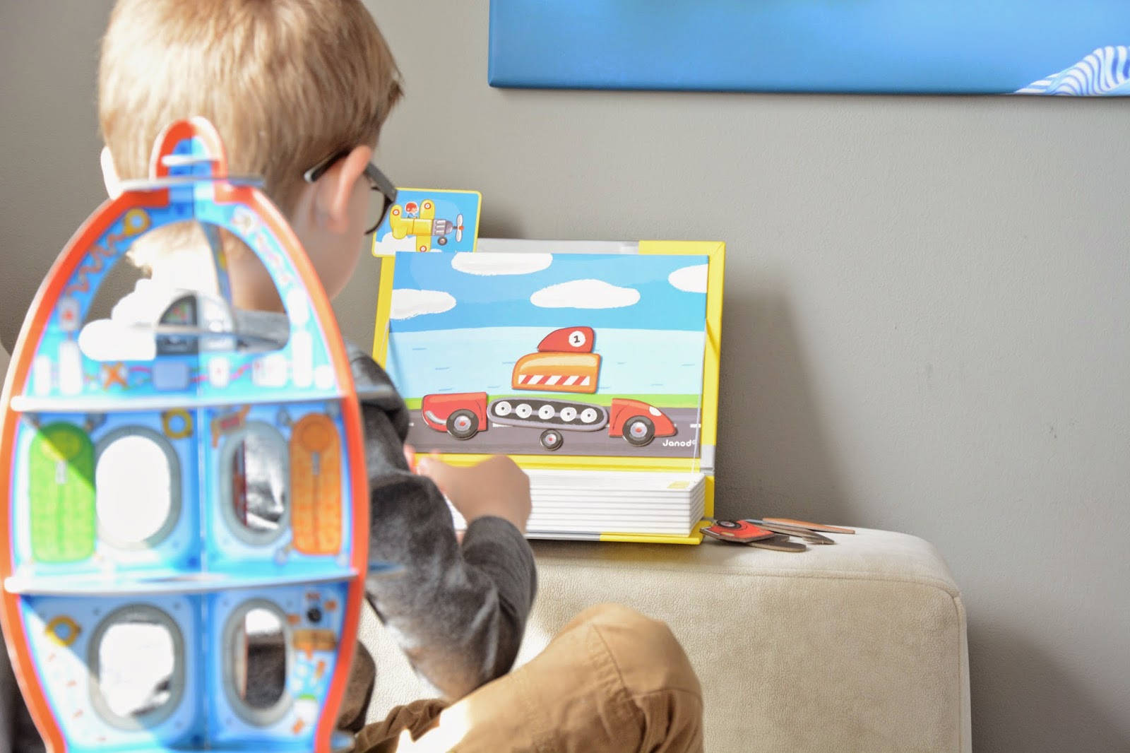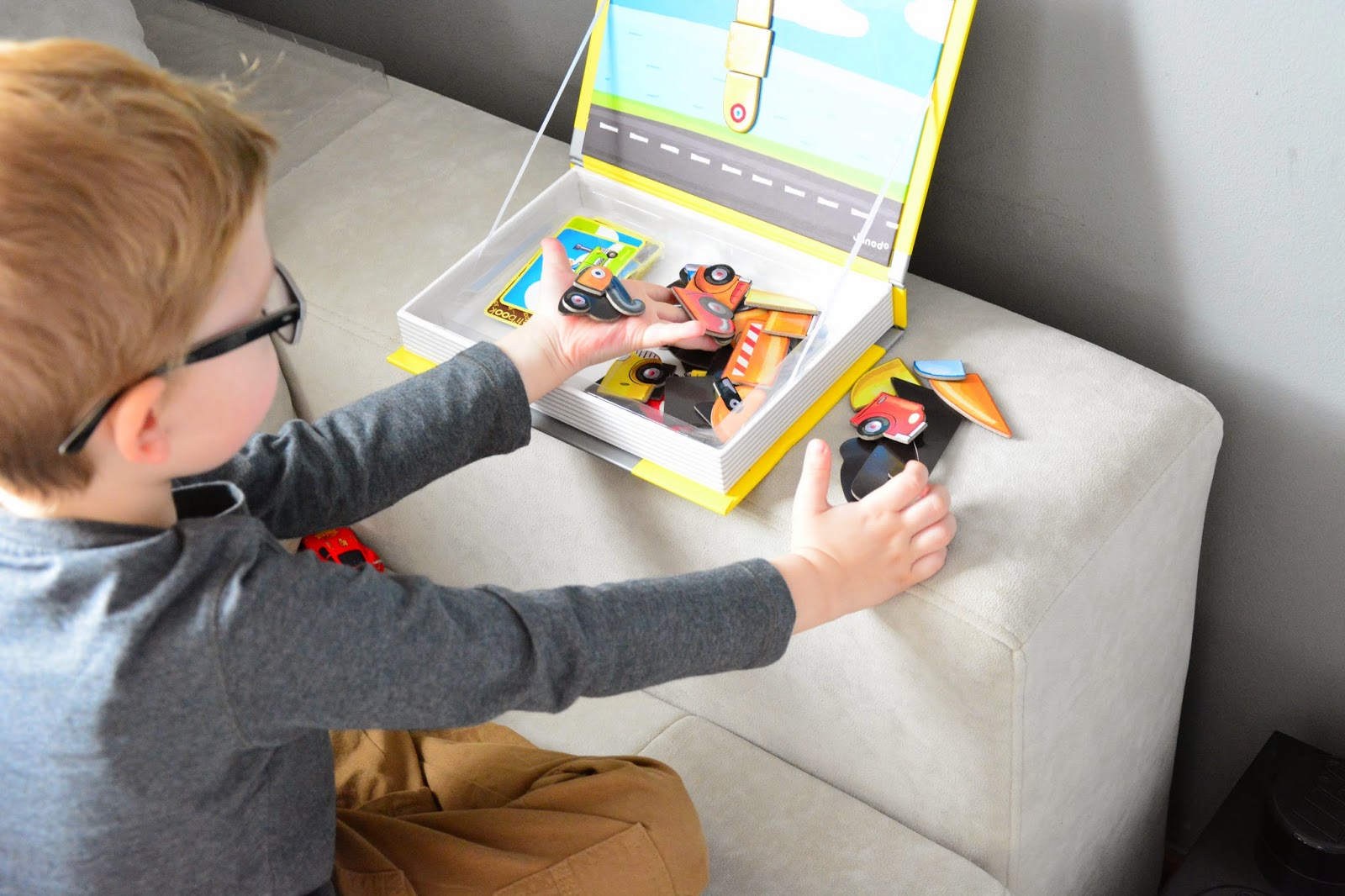 U nas są takie zabawki, które zawsze ratują sytuację, kiedy potrzeba żeby dziecko zajęło się chwilę sobą. Oczywiście Lego i od niedawna Magnetibook Janod. Nie da się ukryć, że mała Bubulinka podkrada zabawki bratu, nie da rady czasem żeby on mógł pobawić się czymś sam bez zamykania drzwi pokoju. Dlatego muszę uważać, żeby zabawek typowo niebezpiecznych dla półtoraroczniaka nie było w domu lub stały wysoko na półce. Czasem zadziwia mnie, że mała wykazuje nawet większe zainteresowanie, ma więcej cierpliwości, chęci odkrywania. Wiadomo, nie dorówna starszemu w układaniu kształtów samolotów czy wyścigówek ale czas jaki poświęci na przyczepianiu, odczepianiu, segregowaniu i wyrzucaniu magnesów pozwoli mi spokojnie wypić popołudniową kawę.