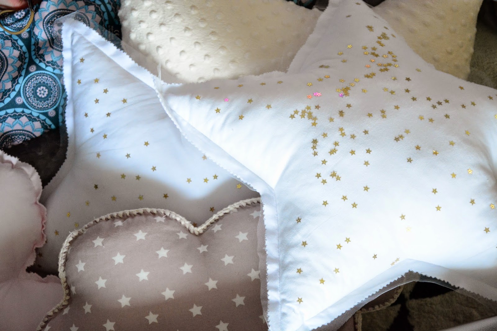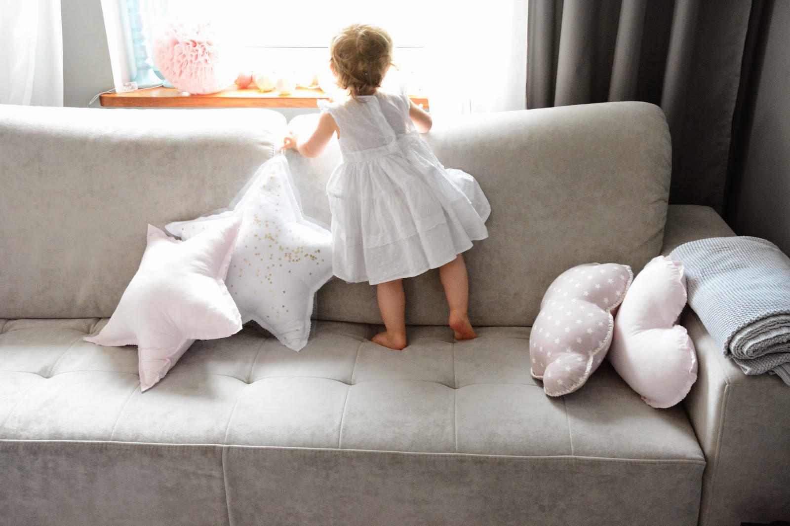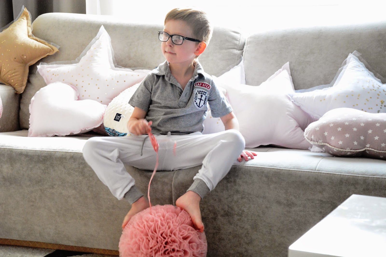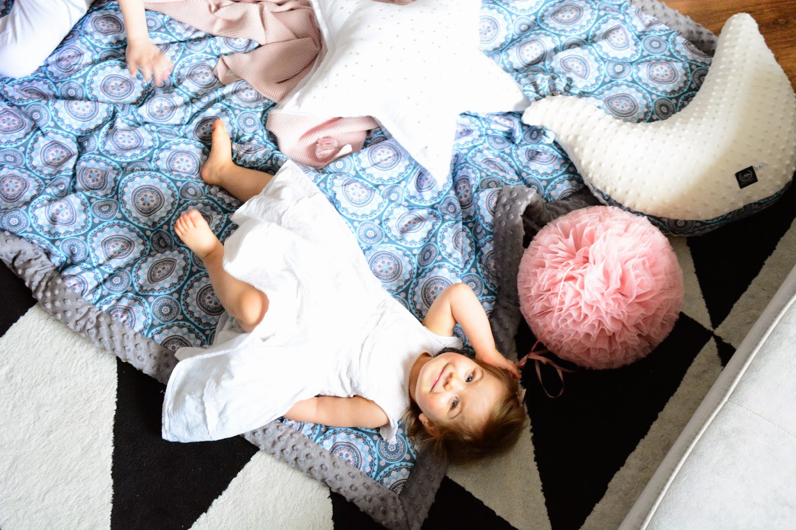 Dlatego tak bardzo cieszę się kiedy mogę sobie te chwile umilić, kiedy otaczamy się ładnymi przedmiotami, kiedy wszystko do siebie pasuje. Kiedy dzieciom jest miło i wygodnie i nawet sztywny pompon nie kłuje w nogi. (?) Ach! oni to mają pomysły 😉 Trudno jest się oprzeć tym pięknotom stojącym i wiszącym u mnie w Bubulince. Patrzą tak na mnie i proszą żeby je zabrać do domu, żeby ich nie zostawiać bo one się tak świetnie wpasują – w moje black&white w moją beżową kanapę. Poduchy gwiazdki, chmurki i serducha zagościły u nas ostatnio i tak się wpasowały jak obiecywały. Cotton Balls i Pompony wiszą cudnie i dopełniają się nawzajem. Nie ukrywam, że asortyment dobieram pod siebie, zamawiam to co lubię, to co jest ładne, nie koniecznie całe serie i komplety, zestawy i całość kolekcji. Selekcjonuję i wybieram to co dałabym swoim dzieciom, dlatego polecam to też Twoim, mam to, co najlepsze – bo wiem, bo sprawdziłam.