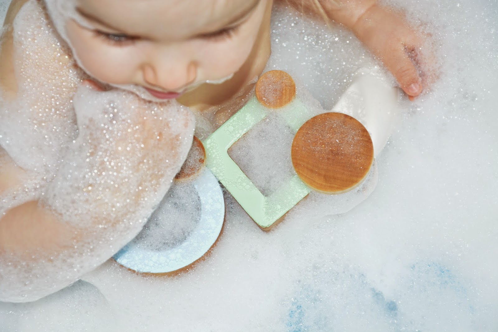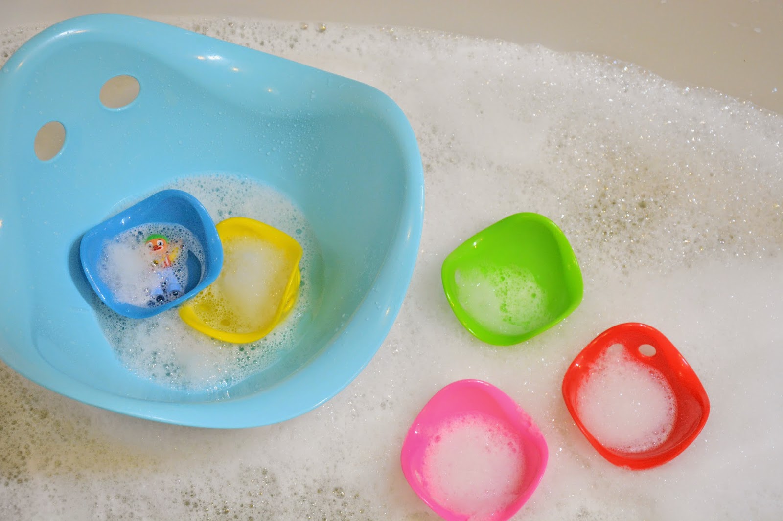 Zabawa zabawą, czas się kąpać. Ile to już zabawek poszło do kosza po przygodach w kąpieli? 50 kupionych, 150 dostanych, tysiące zamienionych przeznaczeniem, uchowa się już chyba tylko to co ma baterie. A jak wiadomo, zabawki nie-kąpielowe krótki mają żywot po dłuższym kontakcie z wodą. Jak naleci do środka woda, zaraz robią się te śliskie glonki, i choćby przez najmniejszy otworek wylatują później do wody, fu! Kiedy znów trafi się coś co ma szczelinki, wrąbki, kanty i zagięcia osadza się na nich kupa tego bezczelnego kamienia. Potem to już tylko hop do śmieci. Tak to się odbywa. Dlatego niektóre zabawki warto mieć, szczególnie te uwalniające wyobraźnię, bezpieczne i łatwe do utrzymania w czystości. Wszystko się wykąpało a i tak z piany był największy ubaw!