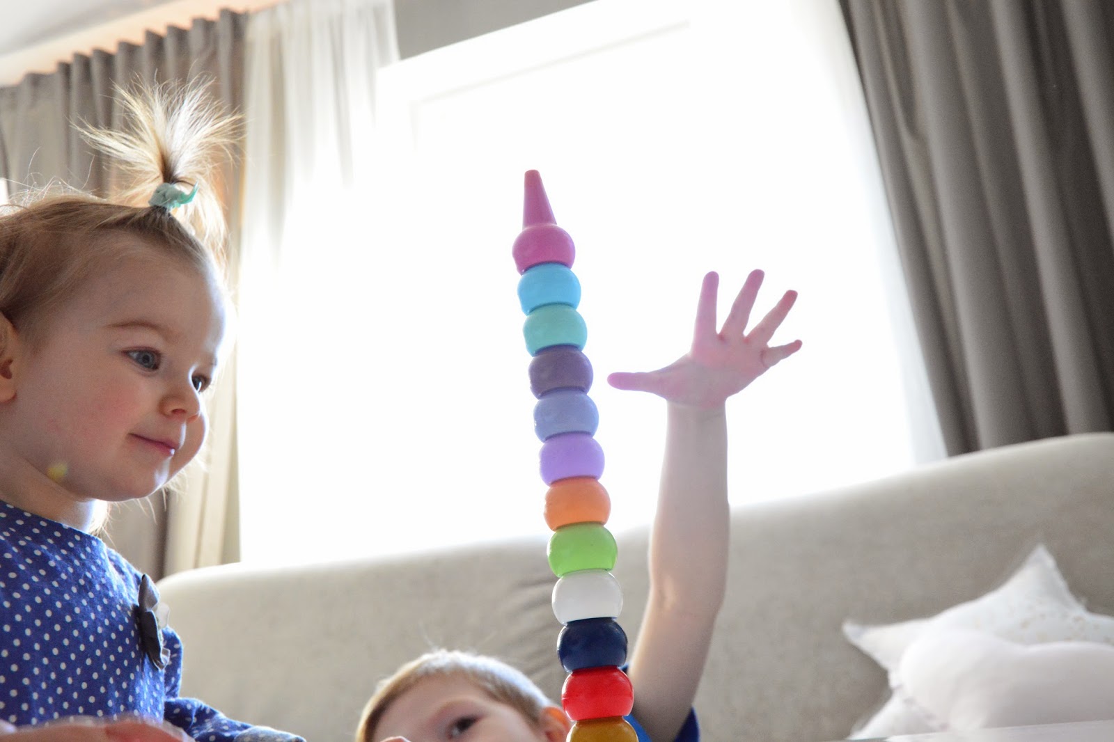Wiecie jak to jest, kiedy dziecko pojawia się w domu – Świat kręci się już tylko wokół niego. A kiedy jest ich już dwoje? Jak może się wtedy zacząć kręcić to ohoho! Myślę już o nich podwójnie, nie jako On, Ona są razem i zawsze razem będą czy tego chcą czy czasem nie 😉 Kiedy przynoszę nowe zabawki do domu muszę się dobrze zastanowić czy to spełni oczekiwania ich obojga, czy dla niej nie będzie za trudno a dla niego za nudno. Trudno dopasować coś uniwersalnie dla ponad czterolatka i prawie półtorarocznej dziewczynki. Całe szczęście, że ona lubi samochody, on ma ich milion, ona ma syndrom włażenia do pudełek, koszy, misek, wszystkiego jak kot, on musi ćwiczyć równowagę, wspomagając ćwiczenia z integracji sensorycznej. Dziś padło na wszechstronne Oda Car, zakręcone wielkie Bilibo i piekne kredki Playon Crayons.