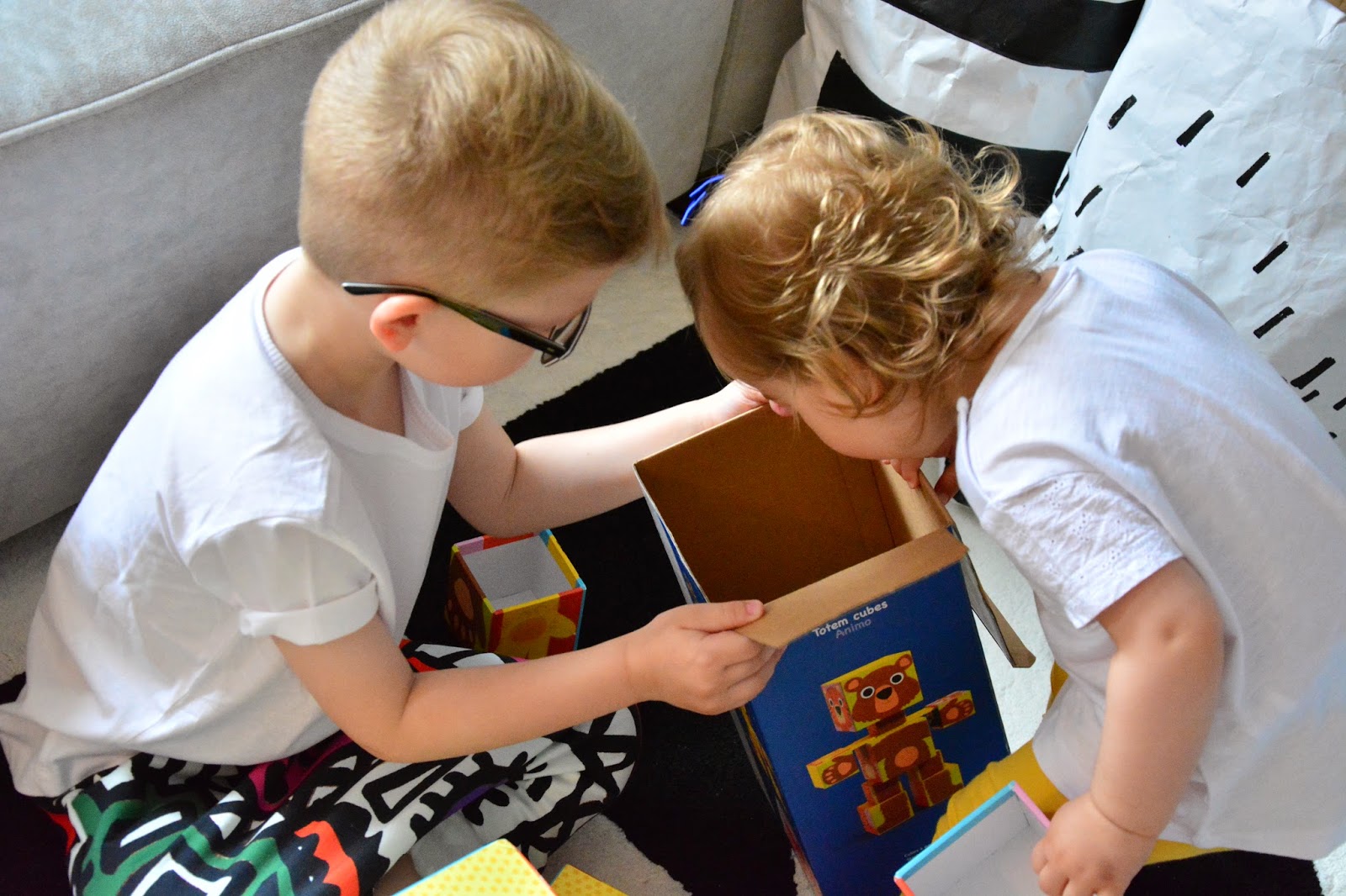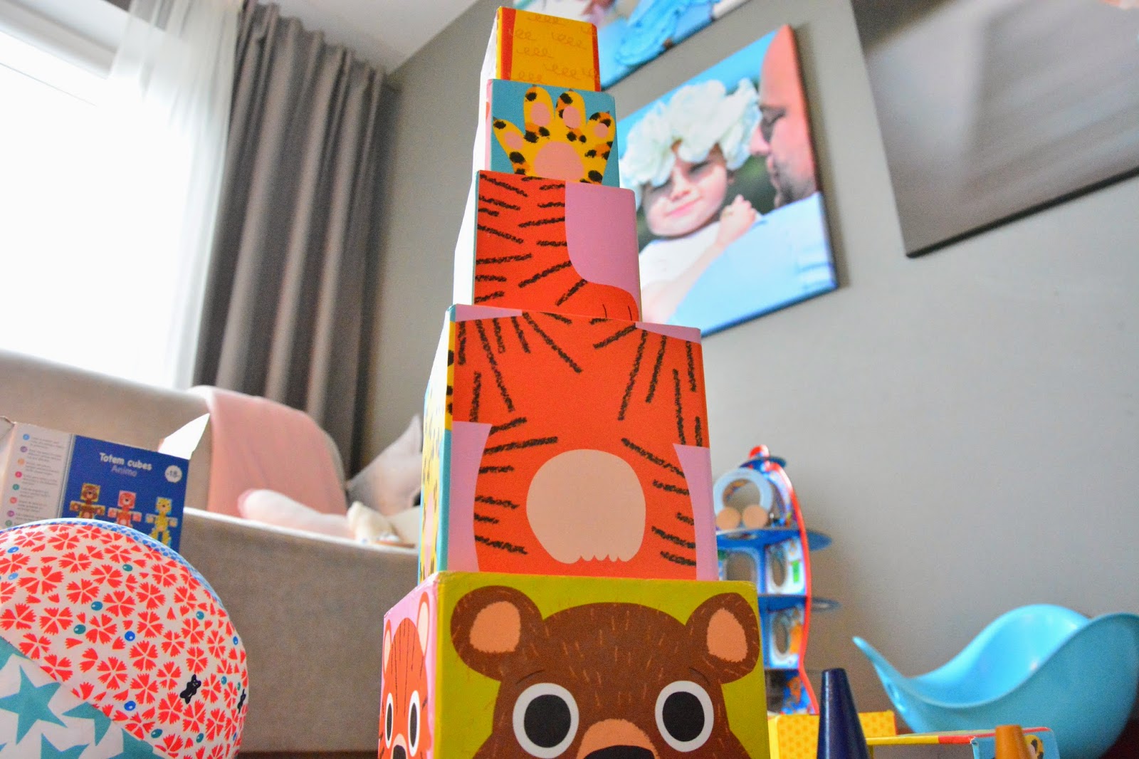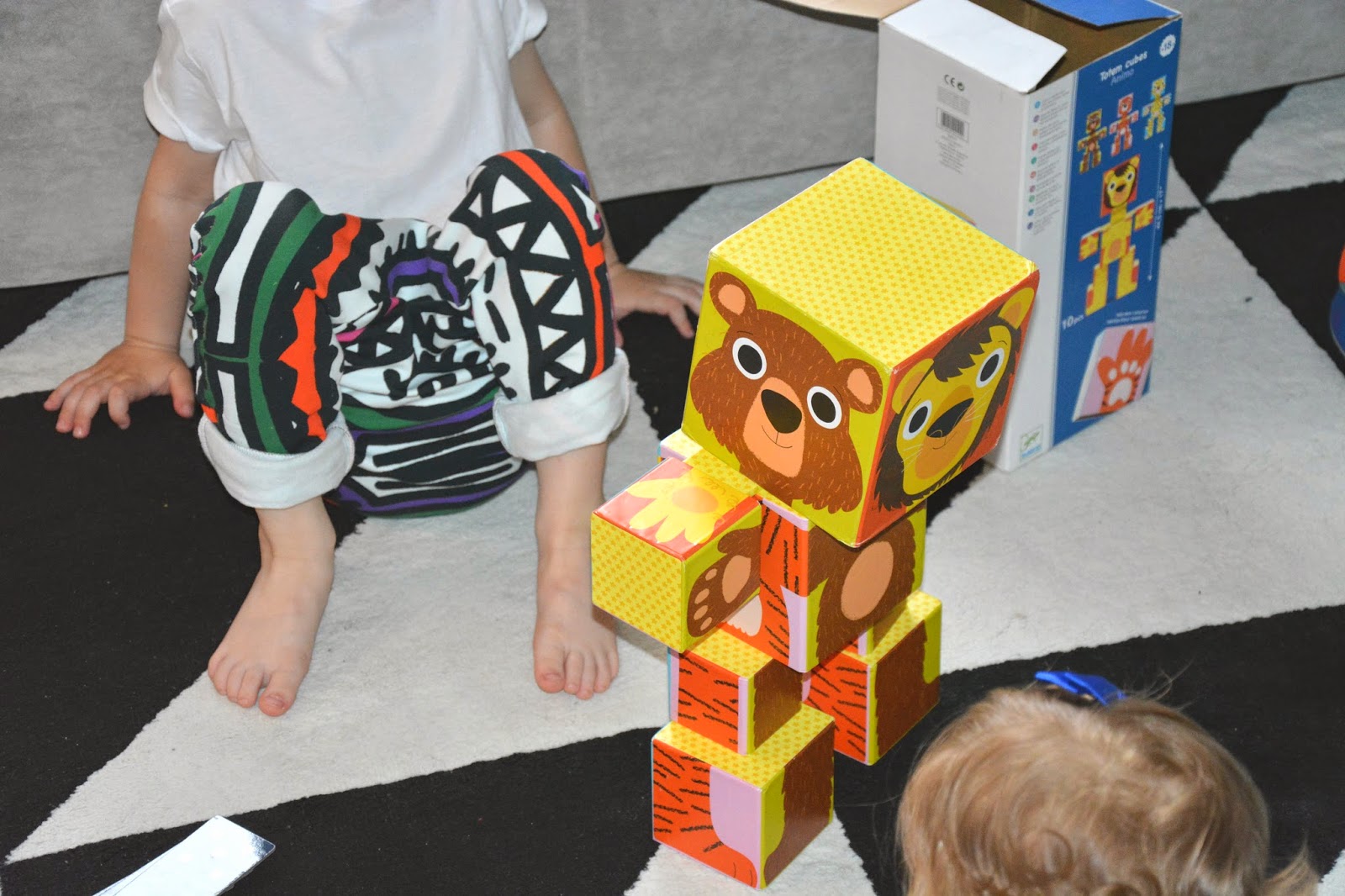 Już dawno planowałam ten post, zabawki to wdzięczny temat, to radość dzieci i rozwój jednocześnie. Te, które pojawiają się coraz częściej w naszym domu to zabawki drewniane i kartonowe. Kolorowe, dostosowane do wieku, edukacyjne, budzące wyobraźnię i kreatywne. Wybór prezentu dla kilkunastomięsięcznej dziewczynki nie był trudny, na półkach w Bubulince stoją różne pudełeczka i kartoniki z oznaczeniem 12+ a sięgam już nawet po 18+. W ogóle wybór czegokolwiek dla dziewczynki jest prostszy, dziewczynka pobawi się i rakietą i samolotem równie dobrze jak lalką, gorzej z chłopcem – jak dostanie różową skakankę mina raczej mu zrzednie. Kiedy Tomik był mały królowały u nas grające, głośne plastikowe cuda i nie odbierając im zasług w uśmiechu małego już za nimi nie tęsknię. To co dziś oferują nam marki w wyborze zabawek eco, drewnianych, z kartonu nie tylko zagranicznych firm a także polskich zdumiewa wyborem. Z samych układanek z dopasowaniem kształtów Djeco ma tyle rodzajów, że trudno się zdecydować. Piękne wykonanie, niebanalne rozwiązania, wygoda użytkowania i idealne dopasowanie do małych rączek i ciekawskich paluszków, to jest to! Przy pierwszym dziecku siedziałam na podłodze, podawałam, tłumaczyłam i uczyłam… Dziś, nie ukrywam również z braku czasu z Niunią robię to rzadziej, zostawiam jej większe pole do samodzielności. Radzi sobie świetnie więc nie mam sobie nic do zarzucenia, tym bardziej, że kiedy pojawi się kłopot starszy brat służy pomocą 😉 Straszy brat też coś z tego ma, bo o ile wyrósł dawno z grających i śpiewających piłeczek i gąsienic tak domino czy klocki do układania zajmują go na równi z małą. To kolejny przykład uniwersalności zabawek z kartonu, zabawek z drewna, które nie raz już znalazły u nas nowe życie i co raz bardziej wymyślne zastosowania.