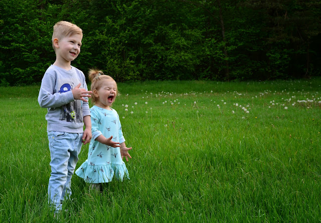 Potrzeba nam czasem oddechu.. takiego większego.. po całym dniu pracy marzę o tym, żeby zobaczyć moje dzieci. Już po drodze do przedszkola – raptem 5 minut z roboty mam przed oczami obraz tańczącej Natki i ubrudzonego po pachy Tomka cieszących się na mój widok 😉 Idę szybkim krokiem z uśmiechem dumnej mamy, aby szybciej aby nie stracić kolejnych 5 minut bez nich. Oczywiście, rzeczywistość czasem nie jest tak kolorowa jak moje fantazje bo zebranie i ubranie dwójki rozlatanych i euforycznie rozkrzyczanych dzieci nie jest proste, przekrzyczenie ich i dojście do porozumienia przy zakładaniu kurtki, butów i czapek to dla mnie wyzwanie. Ganianie po korytarzach w jednym bucie, upominanie „nie na tę nogę!” „gdzie lecisz? wracaj!” A to siku a to pić i dostaję codziennością w twarz i czar pryska. Szukam rozwiązania jak ich okiełznać namówić, przekupić.. No i w końcu udaje mi się! aAle po tym całym szale nie mam wcale ochoty zostawać z nimi na placu zabaw, po 15 minutach mam dość, zaprowadziłabym do domu i zamknęła w pokoju, najlepiej z karą za niegrzeczne zachowanie.. No ale ale… Lepiej jednak nie, lepiej wziąć je zapakować na spacer czy wycieczkę choćby do lasu, wbiec na łąkę i… krzyczeć! Ach tak mi się zachciało, wykrzyczeliśmy się w tym lesie ile wlezie! wykrzyczałam wszystko z siebie parę razy, wypiszczałam a maluchom jak się spodobało! Krzyczeliśmy i śmialiśmy się na tej polanie a mi oczy cieszyły się na widok ich rozdartych gębulek i uśmiechów, jak pięknie krzyczeli, jak wspaniale gestykulowali 😉 Radocha na całego i całe szczęście chwila poza domem, nie w czterech ścianach a w pięknym klimacie, wśród dmuchawców i drzew. Poćwiczyliśmy później trochę zabawy z piłką. Piłką wyjątkową bo balonową, ulubioną piłką Bubulinki. Rzucanie i łapanie ćwiczy koordynację wzrokowo-ruchową i koncentrację. Kolorowe barwy piłek balonowych Djeco cieszą małe oczka a bawełniana powłoka umila dotyk małym rączkom. Poza tym szukam niezmiennie zabaw, które zintegrują dwa moje potworki, dzięki którym będą cieszyć się czasem spędzonym razem i nauczą się sobie pomagać i współpracować.