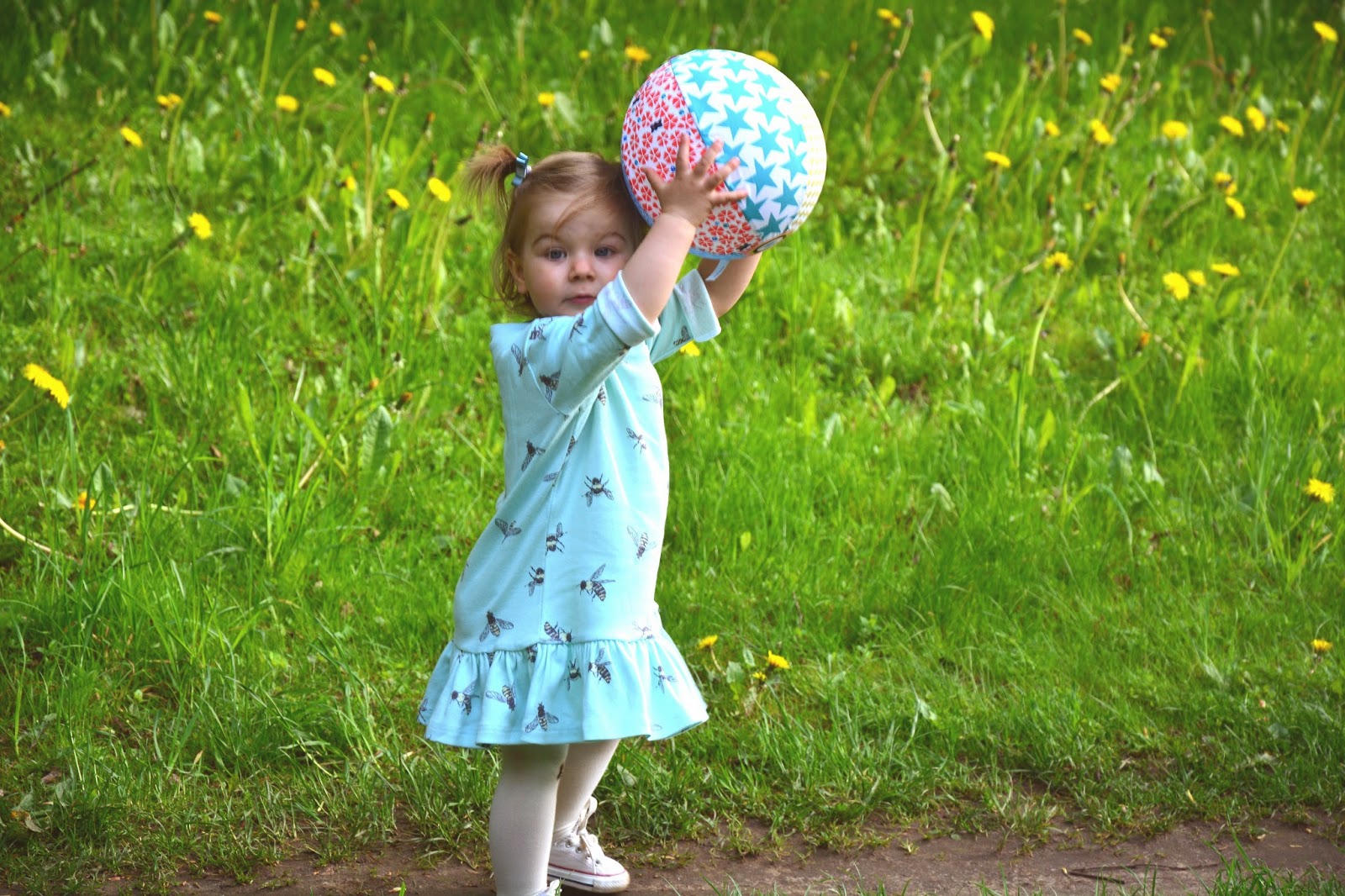 Potrzeba nam czasem oddechu.. takiego większego.. po całym dniu pracy marzę o tym, żeby zobaczyć moje dzieci. Już po drodze do przedszkola – raptem 5 minut z roboty mam przed oczami obraz tańczącej Natki i ubrudzonego po pachy Tomka cieszących się na mój widok 😉 Idę szybkim krokiem z uśmiechem dumnej mamy, aby szybciej aby nie stracić kolejnych 5 minut bez nich. Oczywiście, rzeczywistość czasem nie jest tak kolorowa jak moje fantazje bo zebranie i ubranie dwójki rozlatanych i euforycznie rozkrzyczanych dzieci nie jest proste, przekrzyczenie ich i dojście do porozumienia przy zakładaniu kurtki, butów i czapek to dla mnie wyzwanie. Ganianie po korytarzach w jednym bucie, upominanie „nie na tę nogę!” „gdzie lecisz? wracaj!” A to siku a to pić i dostaję codziennością w twarz i czar pryska. Szukam rozwiązania jak ich okiełznać namówić, przekupić.. No i w końcu udaje mi się! aAle po tym całym szale nie mam wcale ochoty zostawać z nimi na placu zabaw, po 15 minutach mam dość, zaprowadziłabym do domu i zamknęła w pokoju, najlepiej z karą za niegrzeczne zachowanie.. No ale ale… Lepiej jednak nie, lepiej wziąć je zapakować na spacer czy wycieczkę choćby do lasu, wbiec na łąkę i… krzyczeć! Ach tak mi się zachciało, wykrzyczeliśmy się w tym lesie ile wlezie! wykrzyczałam wszystko z siebie parę razy, wypiszczałam a maluchom jak się spodobało! Krzyczeliśmy i śmialiśmy się na tej polanie a mi oczy cieszyły się na widok ich rozdartych gębulek i uśmiechów, jak pięknie krzyczeli, jak wspaniale gestykulowali 😉 Radocha na całego i całe szczęście chwila poza domem, nie w czterech ścianach a w pięknym klimacie, wśród dmuchawców i drzew. Poćwiczyliśmy później trochę zabawy z piłką. Piłką wyjątkową bo balonową, ulubioną piłką Bubulinki. Rzucanie i łapanie ćwiczy koordynację wzrokowo-ruchową i koncentrację. Kolorowe barwy piłek balonowych Djeco cieszą małe oczka a bawełniana powłoka umila dotyk małym rączkom. Poza tym szukam niezmiennie zabaw, które zintegrują dwa moje potworki, dzięki którym będą cieszyć się czasem spędzonym razem i nauczą się sobie pomagać i współpracować.