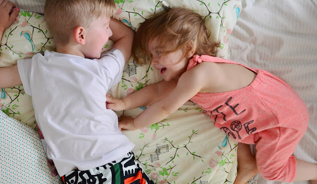 Nareszcie parę dni wolnego! Dla mamy, dla taty, dla dzieci – dla Nas. Lubicie wolne dni czy raczej przyzwyczajeni jesteście do codziennej rutyny? Ja uwielbiam dni „lenia” raz na jakiś czas nic nie robienia.. Wstawania rano kto kiedy chce, dosypiania jeszcze „pół godzinki” bez obaw, że spóźnię się do pracy. Mimo, że jedno skacze mi po nodze a drugie dziubie w oko, mogę jeszcze poleżeć bo jest wolne 😉 Powygłupiać się, poskakać na łóżku, bawić w pościeli. Na spontanie można robić to na co się ma ochotę, bomba! Moje dzieci są mistrzami spontanu, kiedy trzeba jeść śniadanie on akurat rozpracowuje budowę nowego samochodu a ona zamiast ubierać się do przedszkola odkręca wodę w wannie bo ma ochotę się kąpać! Gdyby to tak można było myśleć i robić po dziecięcemu bez konsekwencji, dzieci jednak mają lepiej i pomyśleć, że wszystkie usilnie chcą jak najszybciej dorosnąć. Sama kiedyś chciałam, oby szybko, już, natychmiast, być dorosła i sama o sobie decydować. No to mam. Całe szczęście mogę teraz na nowo przeżywać ten spontaniczny dziecięcy świat na nowo, i mimo, że nie mój własny to taki bliski i taki piękny, bez strachu o jutro, bez zastanawiania się nad każdym krokiem, taki prosty i przyjemny, gdzie wystarczy duże łóżko i pościel do całogodzinnych zabaw. Zabawa bez zabawek, potraficie? Maluchy jak najbardziej, dziś bawiliśmy się tak: mamo, ty będziesz takim biednym ludziem a ja Ci będę budował dom 😉 Ja – schowana pod kołdrę i dom gotowy, dach trzyma się nogą a ścianę ręką, sama przyjemność. Inna moja ulubiona zabawa? W chowanego na łóżku, o matko! Z tekstem: „A teraz musisz zapomnieć gdzie byłem bo znów się schowam w to samo miejsce” 😉 tak jakby na łóżku była inna możliwość jak pod kołdrą, bosko! Miłego długiego wolnego weekendu, kto ma niech się cieszy.