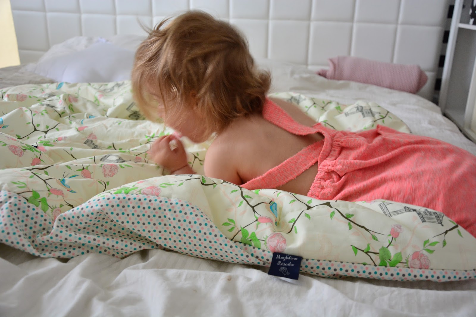 Nareszcie parę dni wolnego! Dla mamy, dla taty, dla dzieci – dla Nas. Lubicie wolne dni czy raczej przyzwyczajeni jesteście do codziennej rutyny? Ja uwielbiam dni „lenia” raz na jakiś czas nic nie robienia.. Wstawania rano kto kiedy chce, dosypiania jeszcze „pół godzinki” bez obaw, że spóźnię się do pracy. Mimo, że jedno skacze mi po nodze a drugie dziubie w oko, mogę jeszcze poleżeć bo jest wolne 😉 Powygłupiać się, poskakać na łóżku, bawić w pościeli. Na spontanie można robić to na co się ma ochotę, bomba! Moje dzieci są mistrzami spontanu, kiedy trzeba jeść śniadanie on akurat rozpracowuje budowę nowego samochodu a ona zamiast ubierać się do przedszkola odkręca wodę w wannie bo ma ochotę się kąpać! Gdyby to tak można było myśleć i robić po dziecięcemu bez konsekwencji, dzieci jednak mają lepiej i pomyśleć, że wszystkie usilnie chcą jak najszybciej dorosnąć. Sama kiedyś chciałam, oby szybko, już, natychmiast, być dorosła i sama o sobie decydować. No to mam. Całe szczęście mogę teraz na nowo przeżywać ten spontaniczny dziecięcy świat na nowo, i mimo, że nie mój własny to taki bliski i taki piękny, bez strachu o jutro, bez zastanawiania się nad każdym krokiem, taki prosty i przyjemny, gdzie wystarczy duże łóżko i pościel do całogodzinnych zabaw. Zabawa bez zabawek, potraficie? Maluchy jak najbardziej, dziś bawiliśmy się tak: mamo, ty będziesz takim biednym ludziem a ja Ci będę budował dom 😉 Ja – schowana pod kołdrę i dom gotowy, dach trzyma się nogą a ścianę ręką, sama przyjemność. Inna moja ulubiona zabawa? W chowanego na łóżku, o matko! Z tekstem: „A teraz musisz zapomnieć gdzie byłem bo znów się schowam w to samo miejsce” 😉 tak jakby na łóżku była inna możliwość jak pod kołdrą, bosko! Miłego długiego wolnego weekendu, kto ma niech się cieszy.