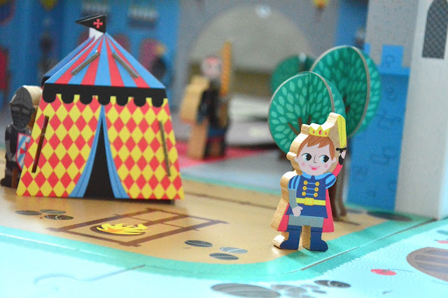Samo rozstawianie go i układanie postaci to niezła frajda! Kto ma gdzie stać, jaki rycerz, który król czy księżniczka. Komnaty, otwierana brama, piękne okienka, fosa i ogrody na około zamku – bajka! Jak już wszyscy są na swoich miejscach nagle zaczyna padać deszcz, wtedy rycerze chowają księżniczki do namiotów żeby nie zmokły im złotowłose główki a gdy pogoda się poprawi księżniczki w ramach podziękowań zapraszają wszystkich na tort i kawę przy pięknie zastawionym stole! Opowieściom nie ma końca a zaczarowane smoki i bajkowa kareta tworzą piękną magiczną atmosferę.