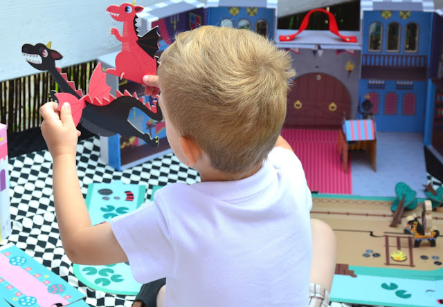 Gdybym miała wielki zamek miałabym co robić, okrągły rok wprowadzając coraz to nowe wizje wystroju w każdym pokoju po kolei. Ja niestety zamku nie mam 😉 mam mieszkanko, zamki maja moje dzieci. Tajemnicze zamki od Janod zamieszkały w naszym nowym dziecięcym pokoju, ale długo tam nie postały bo zabieramy je wszędzie ze sobą. Wspaniały mobilny dom dla rycerzy czy księżniczek jedzie z nami na weekend do babci czy na obiad na wieś w kompaktowej walizeczce. Rozkładamy go na kocu piknikowym La Millou i zabawa może trwać godzinami.