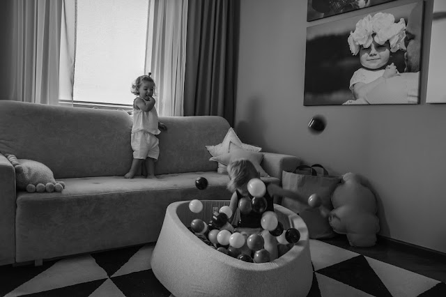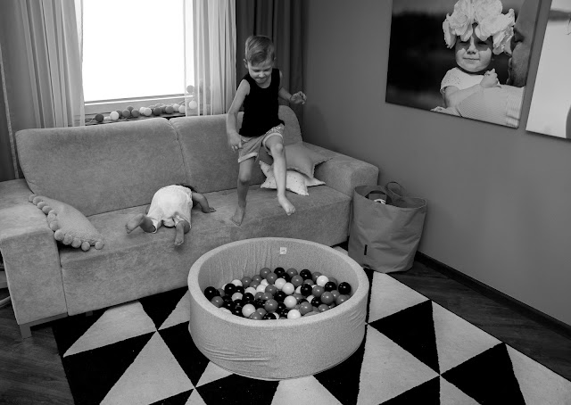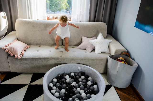 Rodzice tak często o tym zapominają, chcąc mieć grzeczne dziecko i spokój w domu. Sama się czasem na tym łapię, kiedy zmęczona odczuwam dosłownie fizyczny ból w uszach od pisków, tupania nogami i wyścigów urządzanych w mieszkaniu. Nie zawsze potrafię wytrzymać wymachiwanie rękami i niekończące się trzęsienie ziemi kiedy dzieci są w pobliżu. Ale to ich prawo i ich potrzeba. Dlatego nie zdziwiłam się zbytnio kiedy rozłożyłam im ten wspaniały basenik z kulkami i pierwsze co zrobili to skoczyli do niego z kanapy. A widok tych skoków z bezpieczeństwem niewiele miał wspólnego. Raz, drugi, dziesiąty i tak do kilku dni non stop. Szykowałam się raczej może na bitwę na kulki? Może na wylegiwanie na przyjemnie chłodnych piłeczkach, czy przegarnianie ich rączkami? Tak na spokojnie, wiesz? Nie, nie one, nie moje. Te jak zaczęły skakać, tak musiałam sukcesywnie pozbywać ich coraz to innych części garderoby przemoczonych od potu. Trudno było też tę zabawę przerwać, uwaga! graniczy z cudem. Nie bez powodu basen Mini.be nazywają zabawką wszechczasów. Masz taki mini park rozrywki we własnym domu.