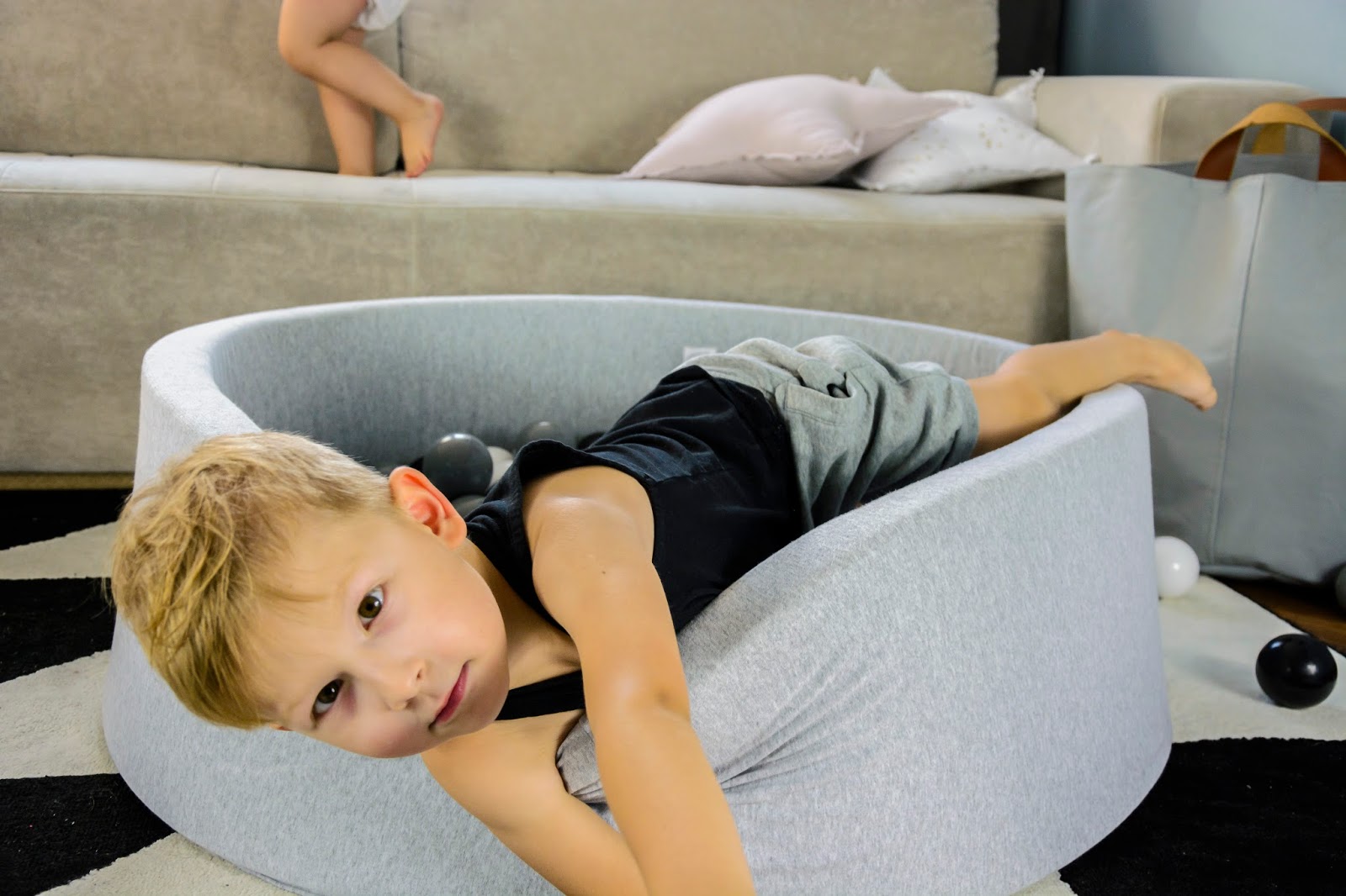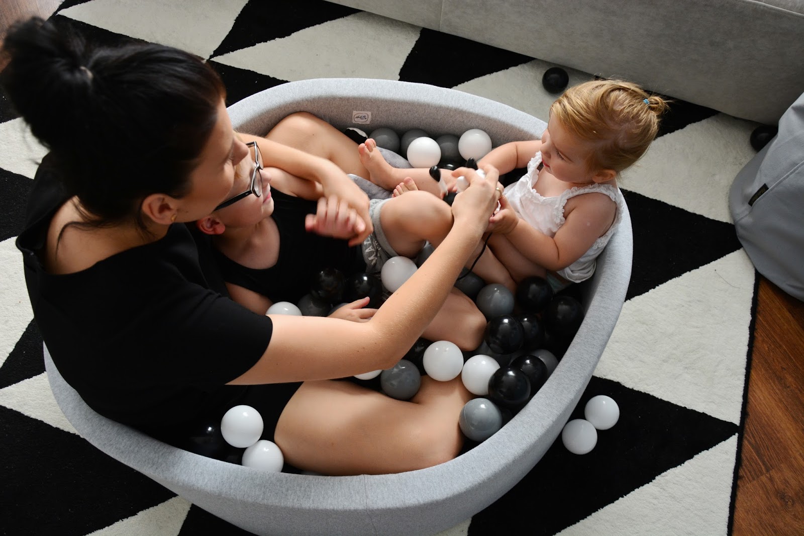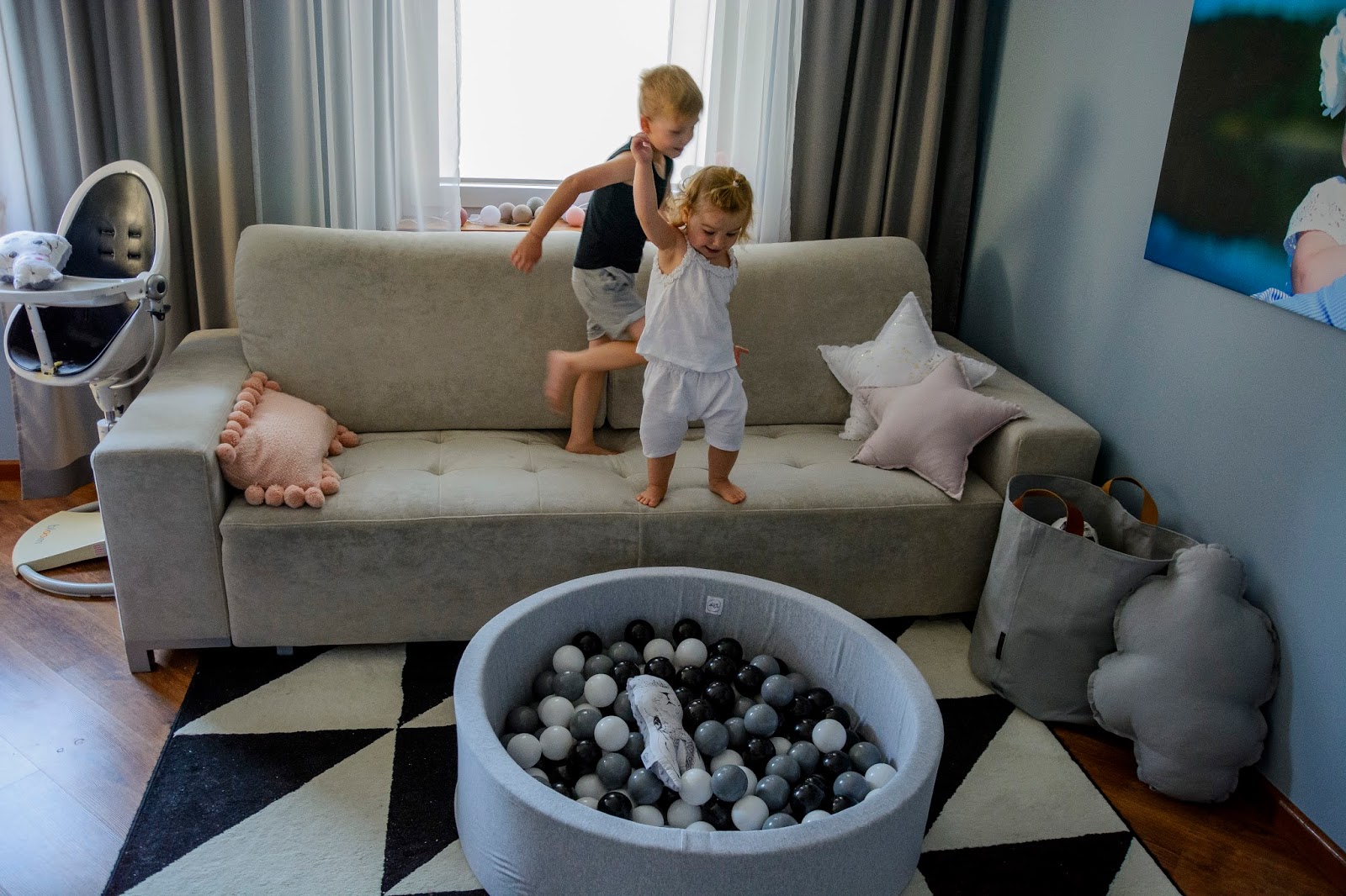 Rodzice tak często o tym zapominają, chcąc mieć grzeczne dziecko i spokój w domu. Sama się czasem na tym łapię, kiedy zmęczona odczuwam dosłownie fizyczny ból w uszach od pisków, tupania nogami i wyścigów urządzanych w mieszkaniu. Nie zawsze potrafię wytrzymać wymachiwanie rękami i niekończące się trzęsienie ziemi kiedy dzieci są w pobliżu. Ale to ich prawo i ich potrzeba. Dlatego nie zdziwiłam się zbytnio kiedy rozłożyłam im ten wspaniały basenik z kulkami i pierwsze co zrobili to skoczyli do niego z kanapy. A widok tych skoków z bezpieczeństwem niewiele miał wspólnego. Raz, drugi, dziesiąty i tak do kilku dni non stop. Szykowałam się raczej może na bitwę na kulki? Może na wylegiwanie na przyjemnie chłodnych piłeczkach, czy przegarnianie ich rączkami? Tak na spokojnie, wiesz? Nie, nie one, nie moje. Te jak zaczęły skakać, tak musiałam sukcesywnie pozbywać ich coraz to innych części garderoby przemoczonych od potu. Trudno było też tę zabawę przerwać, uwaga! graniczy z cudem. Nie bez powodu basen Mini.be nazywają zabawką wszechczasów. Masz taki mini park rozrywki we własnym domu.