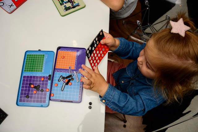 Gry mają cienkie opakowania i zajmują mało miejsca, w środku mieszczą się wszystkie elementy. Wielkość pudełka jest porównywalna do małego tabletu a więź rodzinna przy grze nie porównywalna do tabletowych jednak. Uśmiech dziecka, kiedy wygrywa, lub zaczyna łapać o co w tym wszystkim chodzi i to uśmiech prosto do Ciebie, trochę więcej daje niż przejście następnej planszy w najbardziej odlotowej grze na ekranie. Żeby to miała być dwuminutowa rozgrywka w kółko i krzyżyk to naprawdę warto, szybko się składa i szybko rozkłada a małe palce ruszają się bardzo zgrabnie magnesami po metalowej planszy.