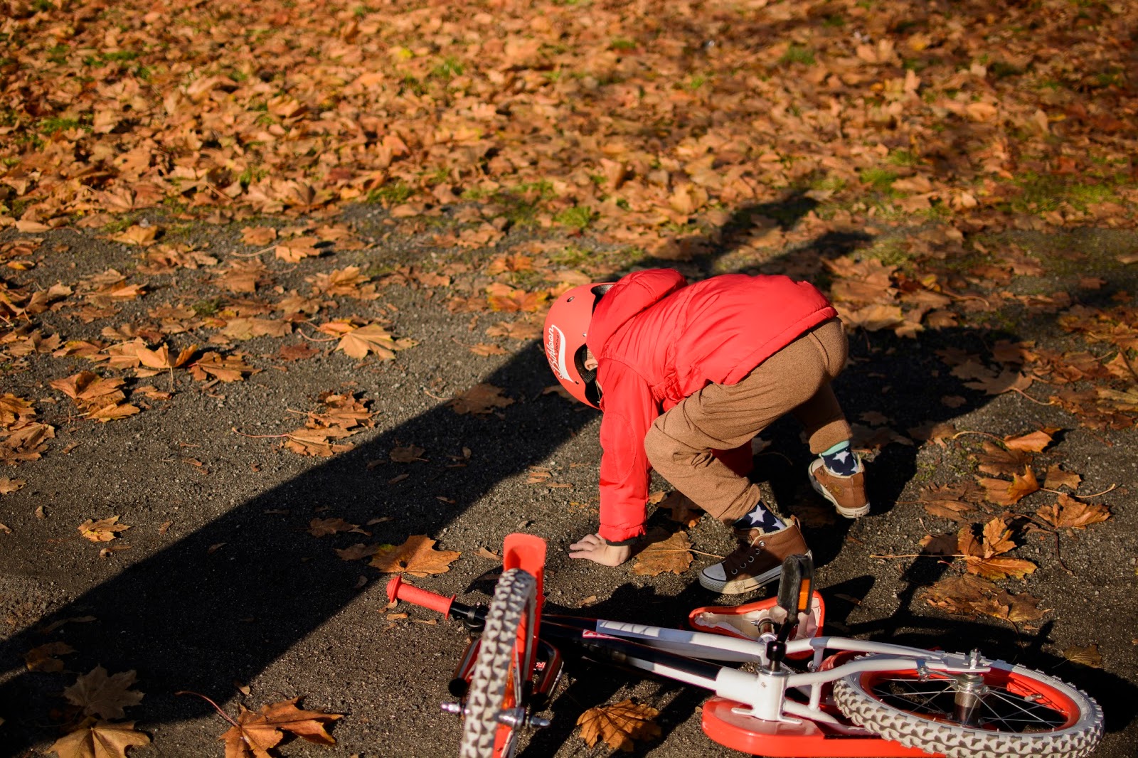 Jak uczył się chodzić, pozwalałam mu upadać i nauczyć się tak balansować ciałem, żeby upadek był jak najmniej bolesny. Upadł kilka razy, podniósł się i zaczął sam chodzić, kiedy skończył 9 miesięcy. Zasuwał pewnie i szybko, zawstydzając przy tym swoich rówieśników. Szybko chodził, szybko mówił, szybko mi zmądrzał i wydoroślał. Byłam przekonana, że nauka jazdy na rowerze przyjdzie nam tak naturalnie jak śmiganie na biegówce i hulajnodze. Nie byłam przygotowana na te kilka niepowodzeń pod rząd, on też nie.
