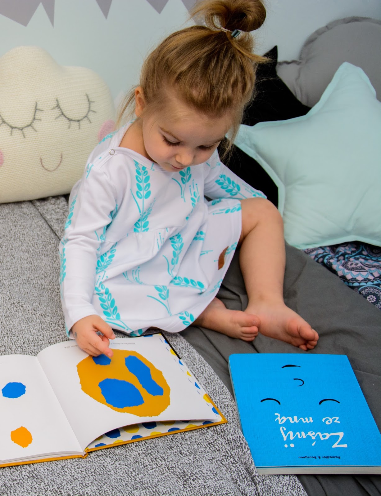 Zaśnij ze mną. Tym razem to książka wzywa nas do utulenia siebie i buziaka na dobranoc! Kto by pomyślał!? Usypiać książkę? Słyszałam o książce, która usypia, tu mamy odwrotnie. Dziecko prowadzi niebieską książeczkę o czarnych oczkach przez cały proces usypiania pilnując nawet czy zrobiła siusiu 😉 Szkoda, że nie jest do tego pluszowa i mięciutka bo wrażenie sprawia właśnie takiej mimo twardych stron.