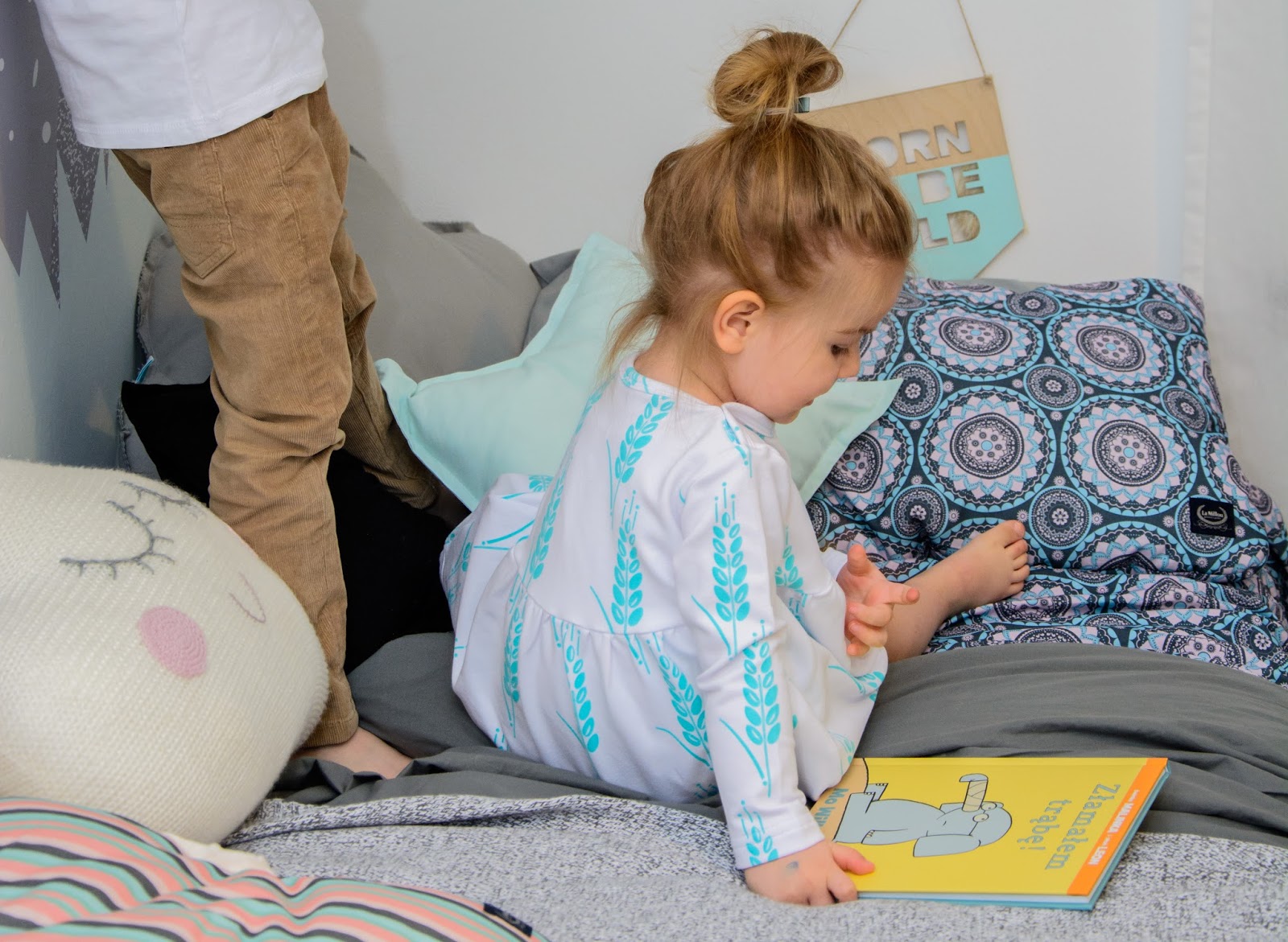 My spędzimy te nudne dni w książkach, oczywiście między jedzeniem a leżeniem. Książki bowiem opanowały nam ostatnio każdy wieczór na dużo dłużej i intensywniej niż dotychczas. Być może dlatego, że Tomik zaczyna czytać i łapczywie pochłania każdy wyraz za wyrazem z wielkim głodem wiedzy na temat wszystkich napisanych wokół siebie liter, gdziekolwiek by nie były. Ciągle czyta, literuje i liczy! Nie mogę się doczekać kiedy to on zacznie mi czytać do snu, tymczasem czytamy jakby wspólnie. Z Natką „czytamy” książeczki obrazkowe z Tomikiem czytamy razem.
