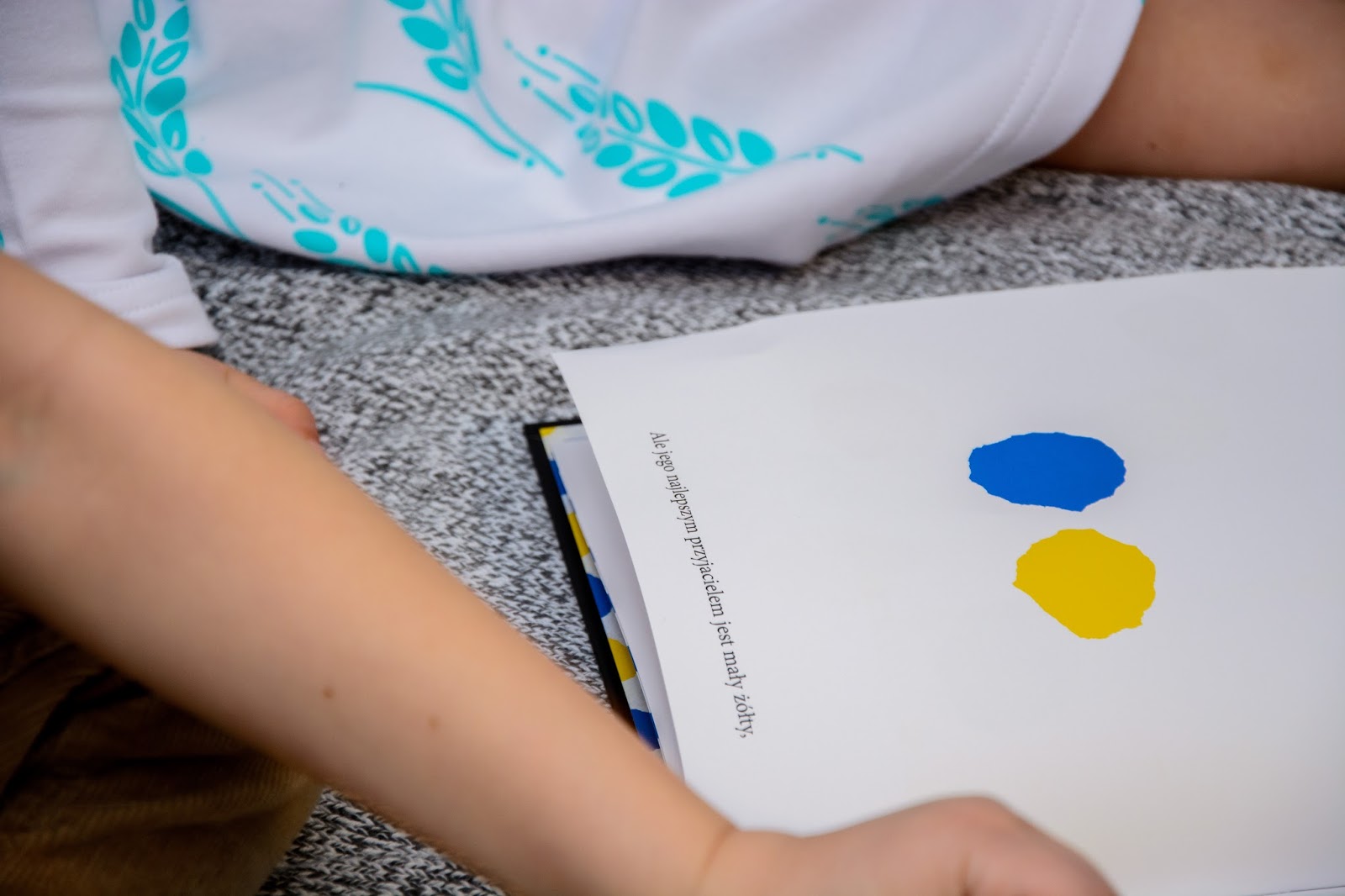 Choć powiem szczerze, tak naprawdę szczerze, że kiedy wzięłam do ręki książkę Mały Żółty i Mały Niebieski zaczęłam zastanawiać się co autor musiał zjeść, wypić czy spalić żeby wymyślić te „postaci”. Serio wyobraźnia dzieci szaleje przy tych kolorowych plamkach podobnie jak przy „Naciśnij mnie” Tulleta.
