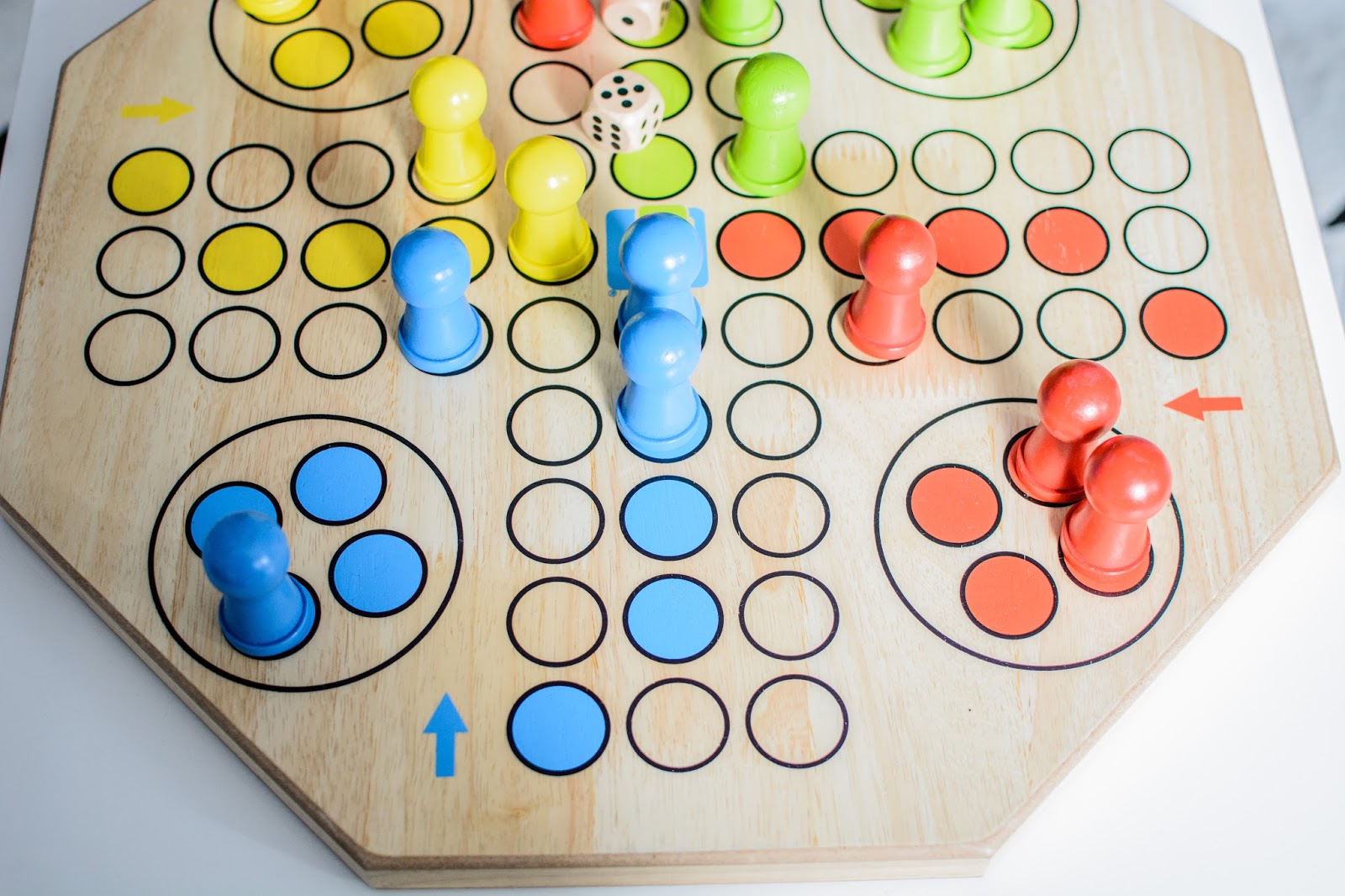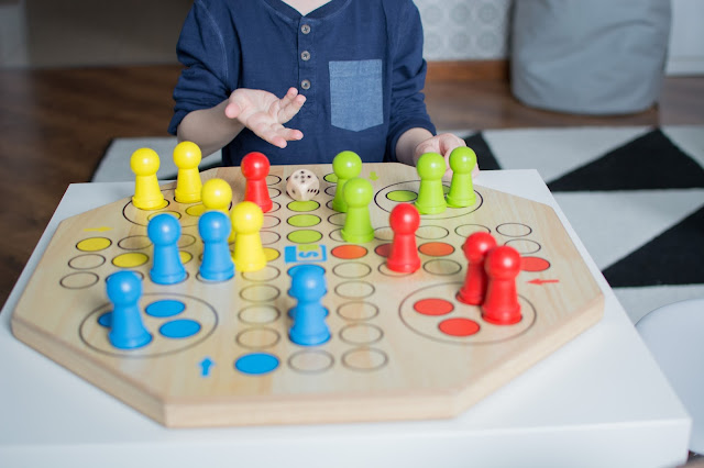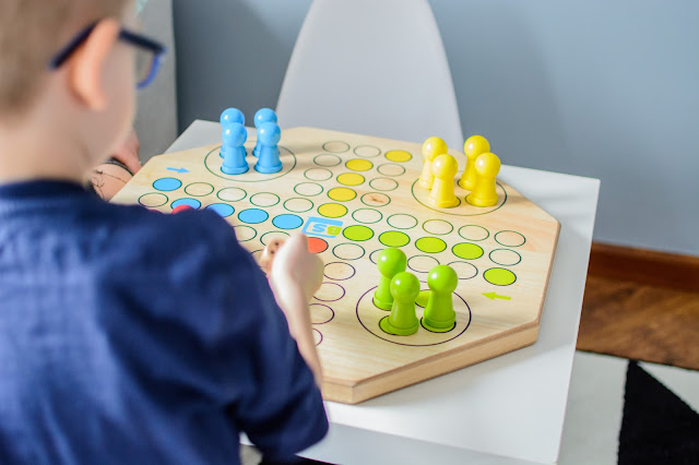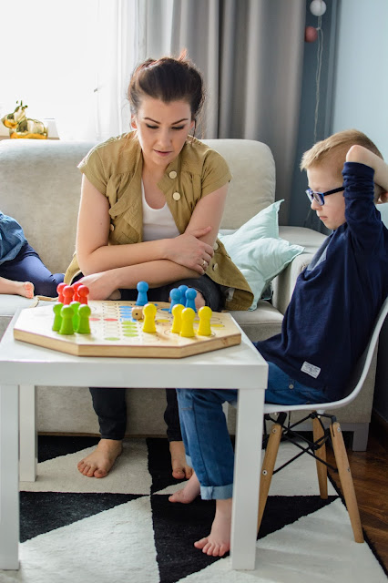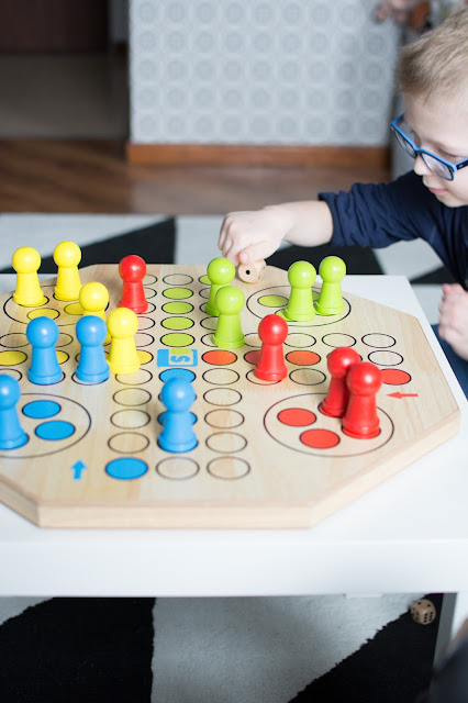 Z tymi grami jest jednak trochę inaczej, spójrzcie na dół – niby zwykły chińczyk ale w wymiarze XL i ma całkiem inny odbiór. O ile ciekawszy i bardziej atrakcyjny! W sumie to nie istotne nawet czy gramy fair czy nie, czy reguły są zgodne z instrukcją czy mamy własne najważniejszą cechą tych zabaw to integracja całej rodziny, od małego do dużego wszyscy są zajęci i z przyjemnością spędzamy ten czas wspólnie. Nawet mała się zaczyna interesować, choć dla niej znów największą atrakcją jest rzucić kostką…w dal i uciekać.