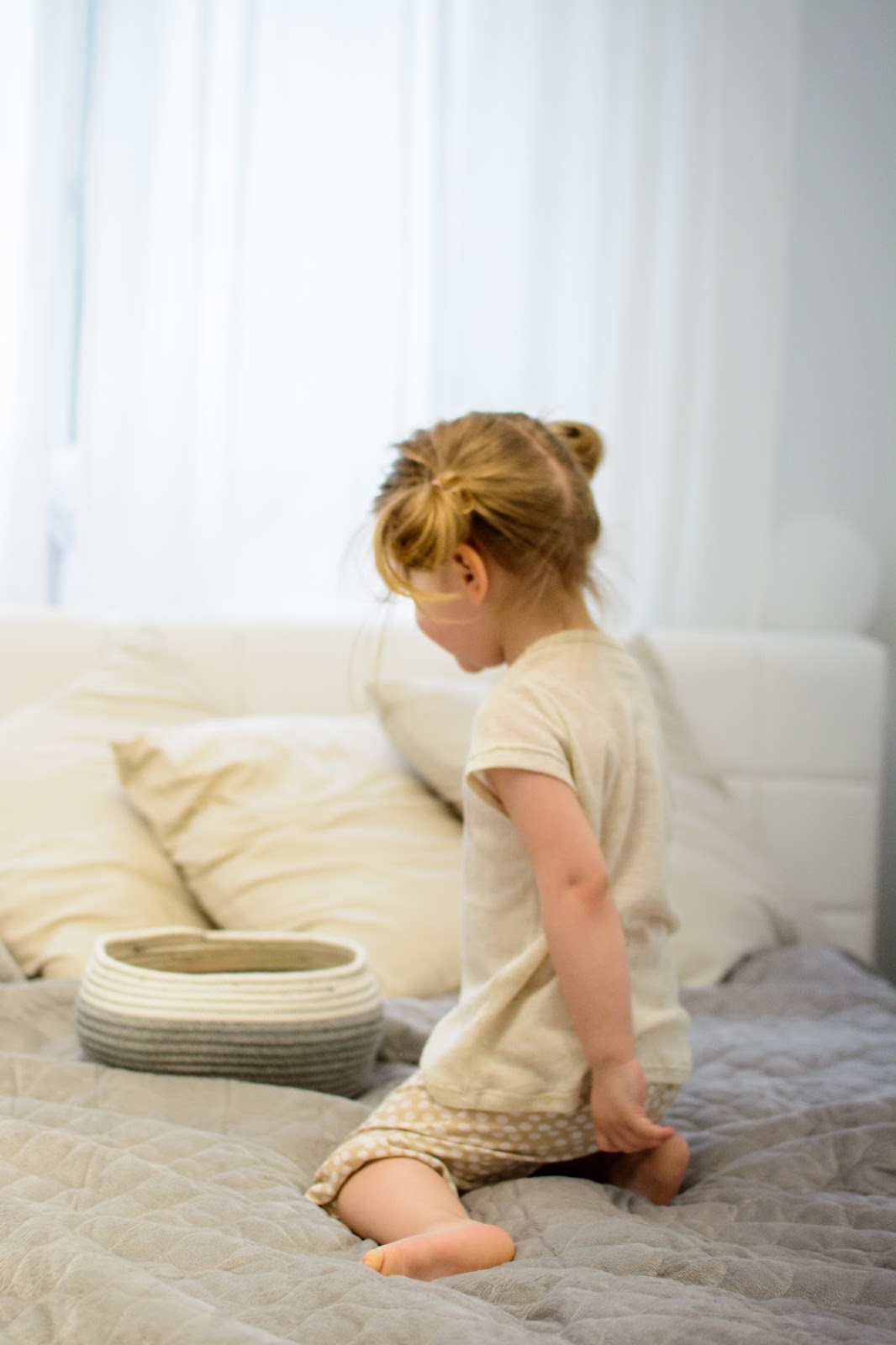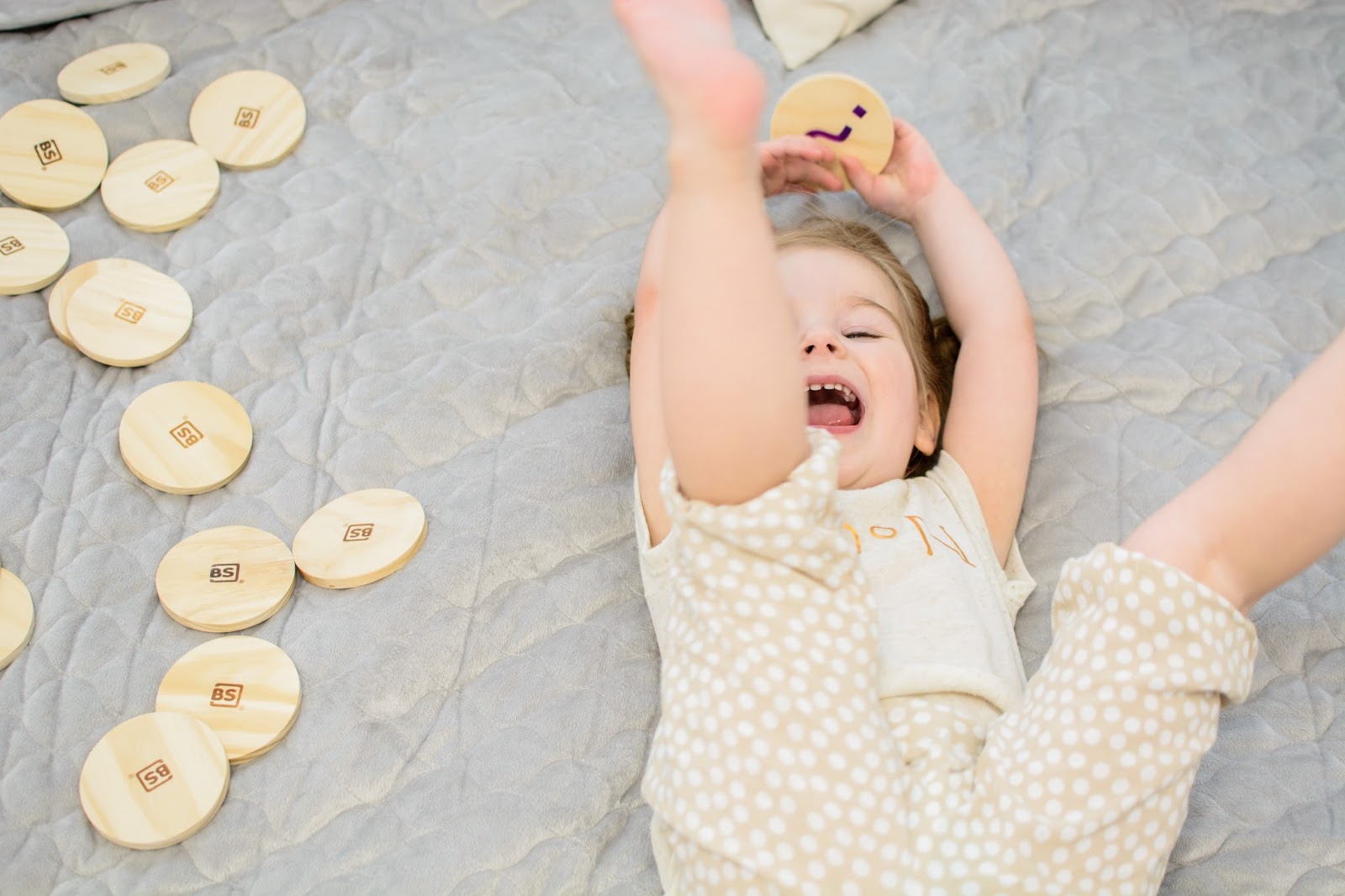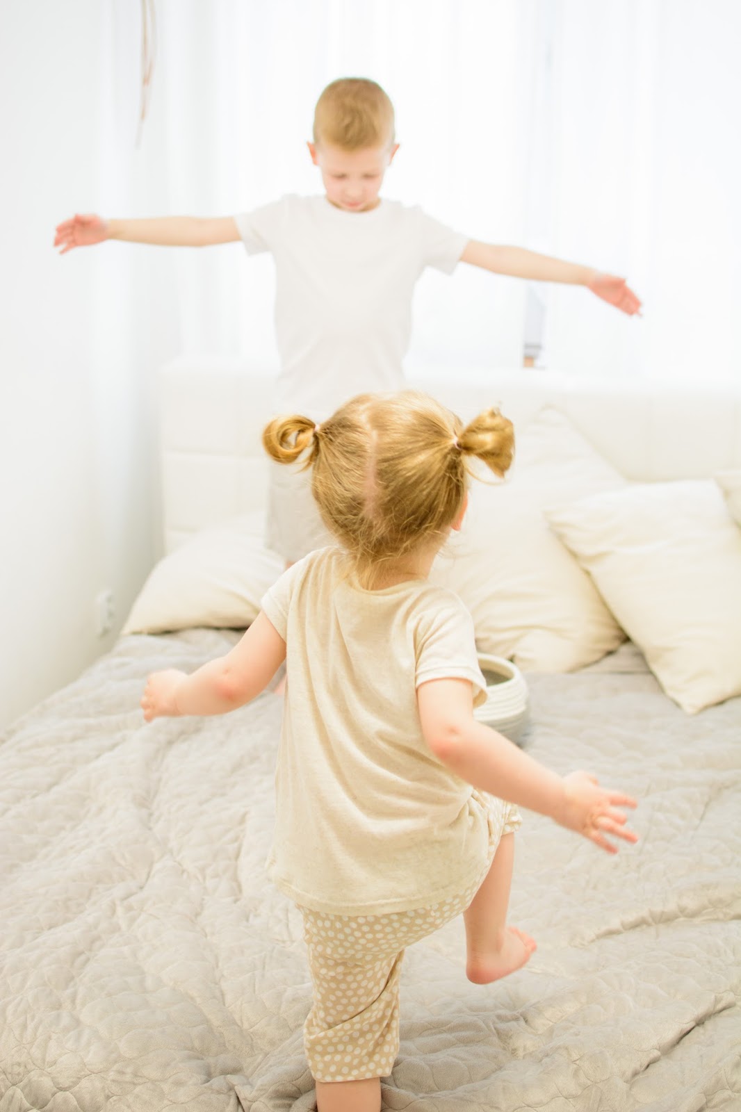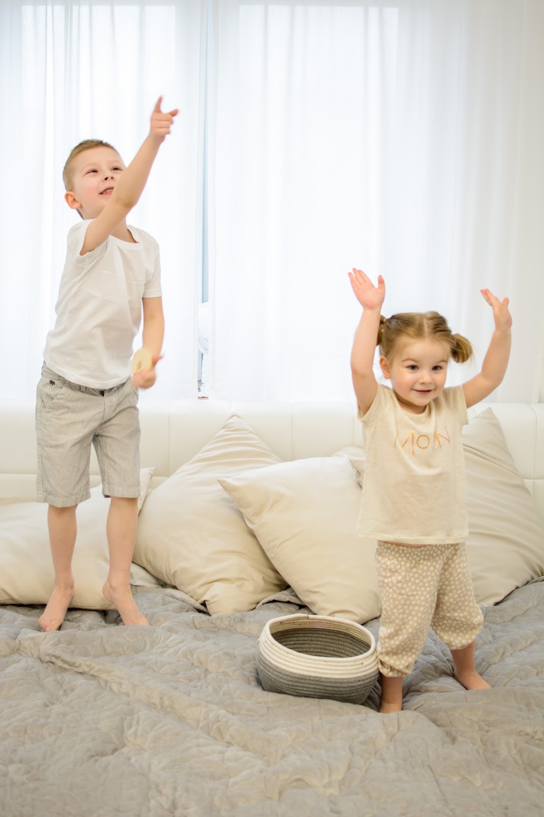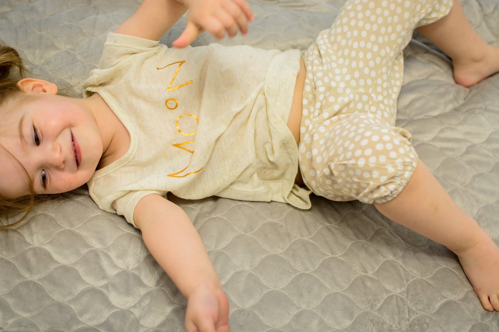 Co z tego, że mają swój pokój. Co z tego, że mają spory pokój dzienny, do którego ciągle znoszą zabawki ( Tak jak TU). Już dawno rozpoczęli ekspansję dodatkowo na nasz osobisty sypialniany teren. Zagarnęli wszystko bez skrupułów a my się im poddajemy. Budząc się rano z obcą nogą na głowie i małymi paluszkami w oku nie zawsze dobrze się wstaje. Kiedy właściciel tej nogi i tych paluszków równocześnie bezlitośnie ściąga z Ciebie cieplutką kołdrę krzycząc „mamoooooo nie śpij już!” nie wiesz czy to nadal zły sen czy już poranna rzeczywistość. Zanim młoda zacznie spać do 10tej tak jak Tomik minie jeszcze kilka lat. Tymczasem mimo tego, że jedno jeszcze śpi trzeba się zrywać do drugiego. Oczywiście zrywa się mama kiedy tata słodko jeszcze śpi. idąc dalej tym tropem im bardziej wolny jest dzień tym zrywam się wcześniej. I wtedy się zaczyna.. co tu zrobić żeby ukraść dla siebie jeszcze pięć minutek z zamkniętymi oczami, chociaż 4 poleżeć jeszcze taka niewidoczna pod kołdrą? Marzę o tym, żeby ją czymś zająć a kiedy obudzi już brata żeby zająć obydwoje. Zbyt długo myśleć nie mogę bo dość szybko pojawia się okrzyk „mamo włącz mi youtube!” dlatego próbuję coraz to czegoś nowego. Ostatnio znalazłam sposób na zajęcie porannych ptaszków – grę Moves! Drewniane koła kryją przeróżne pozy ludzików, które należy naśladować. Tylko tyle, już koniec – to im wystarcza a zajęcie mają co najmniej na pół godzinki. Skaczą na jednej nodze, robią skłony i wymachują rękami – śmiechu mają po pachy i ćwiczenia z rana zaliczone. To dla mnie gra na wagę złota. Taka, która zajmie dzieci bez konieczności uczestnictwa rodziców. Czasem tak niewiele daje wielki efekt a to, że są razem umożliwia im tysiące możliwości. Jedno zachęca drugie, pojawia się rywalizacja i oczywiście naśladowanie. Gra uczy tego, że ćwiczenia to zabawa i radość i przemyca masę zdrowego ruchu.
