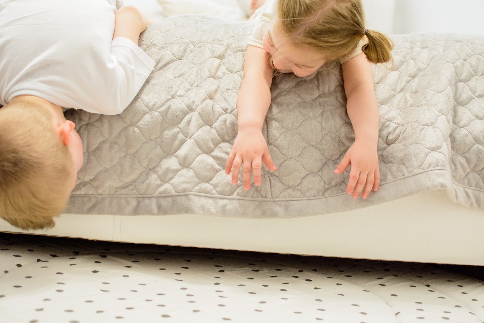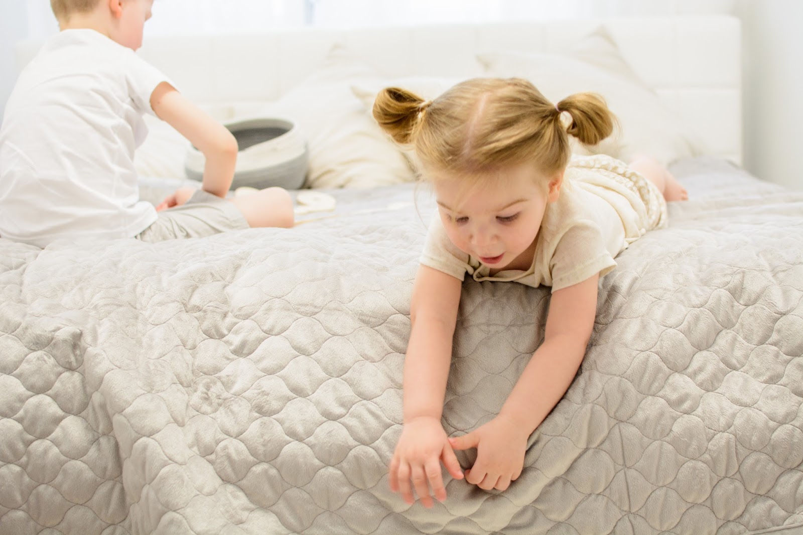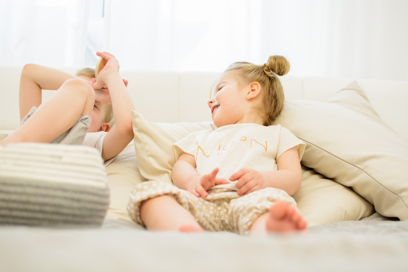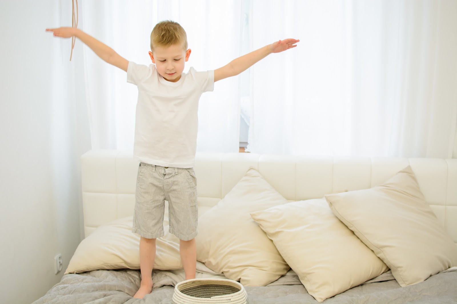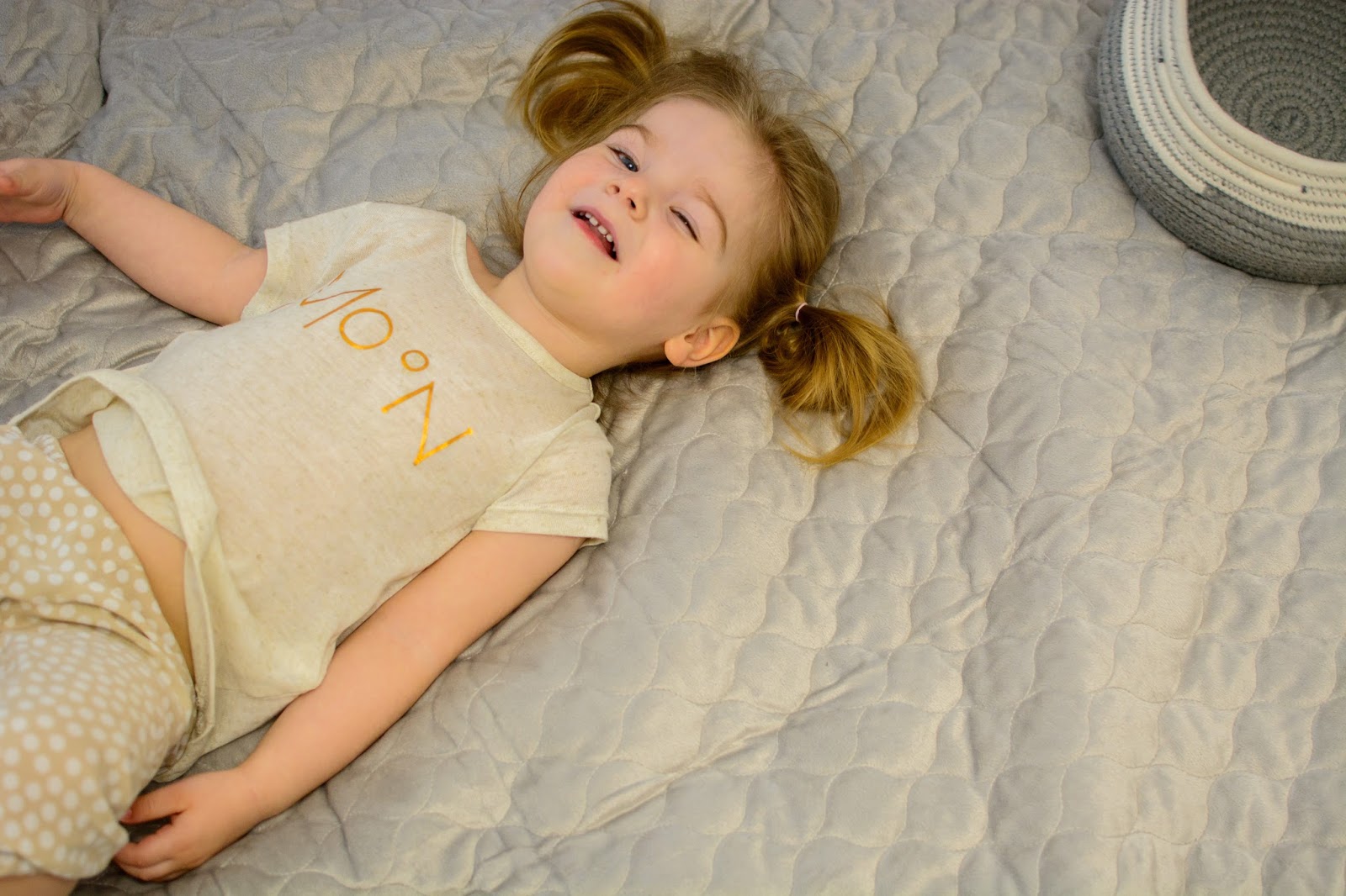 Co z tego, że mają swój pokój. Co z tego, że mają spory pokój dzienny, do którego ciągle znoszą zabawki ( Tak jak TU). Już dawno rozpoczęli ekspansję dodatkowo na nasz osobisty sypialniany teren. Zagarnęli wszystko bez skrupułów a my się im poddajemy. Budząc się rano z obcą nogą na głowie i małymi paluszkami w oku nie zawsze dobrze się wstaje. Kiedy właściciel tej nogi i tych paluszków równocześnie bezlitośnie ściąga z Ciebie cieplutką kołdrę krzycząc „mamoooooo nie śpij już!” nie wiesz czy to nadal zły sen czy już poranna rzeczywistość. Zanim młoda zacznie spać do 10tej tak jak Tomik minie jeszcze kilka lat. Tymczasem mimo tego, że jedno jeszcze śpi trzeba się zrywać do drugiego. Oczywiście zrywa się mama kiedy tata słodko jeszcze śpi. idąc dalej tym tropem im bardziej wolny jest dzień tym zrywam się wcześniej. I wtedy się zaczyna.. co tu zrobić żeby ukraść dla siebie jeszcze pięć minutek z zamkniętymi oczami, chociaż 4 poleżeć jeszcze taka niewidoczna pod kołdrą? Marzę o tym, żeby ją czymś zająć a kiedy obudzi już brata żeby zająć obydwoje. Zbyt długo myśleć nie mogę bo dość szybko pojawia się okrzyk „mamo włącz mi youtube!” dlatego próbuję coraz to czegoś nowego. Ostatnio znalazłam sposób na zajęcie porannych ptaszków – grę Moves! Drewniane koła kryją przeróżne pozy ludzików, które należy naśladować. Tylko tyle, już koniec – to im wystarcza a zajęcie mają co najmniej na pół godzinki. Skaczą na jednej nodze, robią skłony i wymachują rękami – śmiechu mają po pachy i ćwiczenia z rana zaliczone. To dla mnie gra na wagę złota. Taka, która zajmie dzieci bez konieczności uczestnictwa rodziców. Czasem tak niewiele daje wielki efekt a to, że są razem umożliwia im tysiące możliwości. Jedno zachęca drugie, pojawia się rywalizacja i oczywiście naśladowanie. Gra uczy tego, że ćwiczenia to zabawa i radość i przemyca masę zdrowego ruchu.