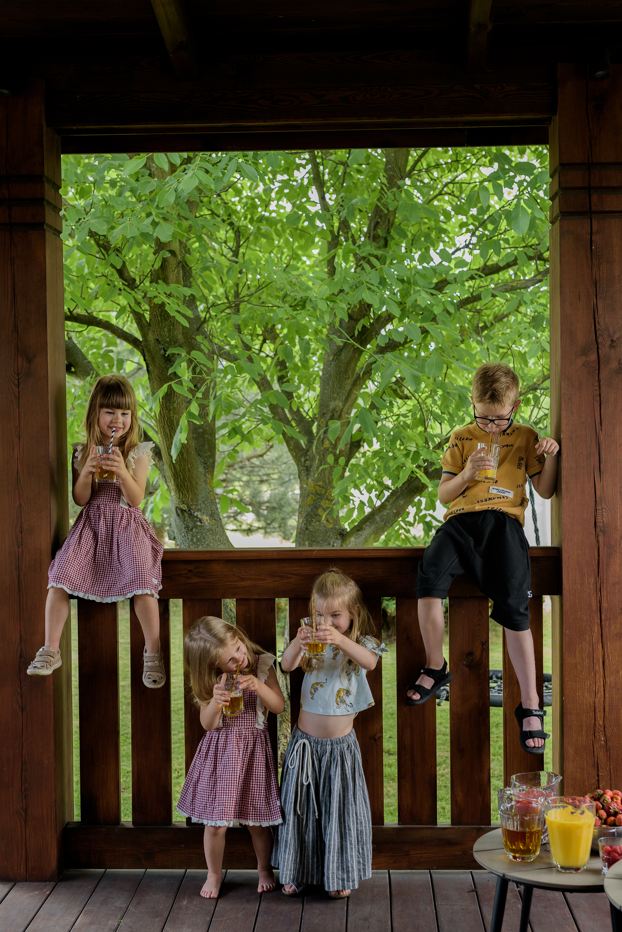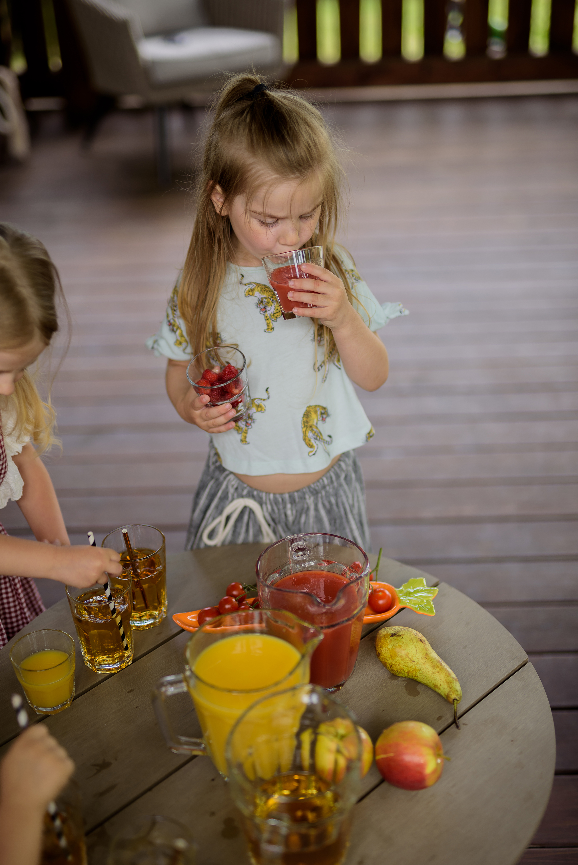 Wakacje rozleniwiają, nie wymagają, opóźniają terminy i rozluźniają obowiązki. Często nie chce nam się przygotowywać ciepłych posiłków czy przekąsek. W wakacje najwięcej się pije. Jednak warto, aby wakacje nie były pretekstem do przerwy w zbilansowanym żywieniu. Dlatego już moja w tym głowa, aby było łatwiej, ale wciąż zdrowo. Wiem, że teraz pozwolę dzieciom na więcej, tylko tak trochę na własnych warunkach. Nie po to walczę cały rok o szklankę soku, każde jabłuszko, marchewkowe babeczki czy krem brokułowy, aby teraz, latem dać się namówić na szybkie i nieprzemyślane jedzenie. Na ratunek idzie sok! Szklanka soku, także tego pasteryzowanego z kartonu może być z powodzeniem jedną z pięciu zalecanych dziennie owocowo-warzywnych porcji. Tą słynną porcją może być także talerz zupy lub garść warzyw, owoców odpowiadająca wielkości garści osoby ją spożywającej. Czyli dziecku wystarczy jedno jabłko czy pomidorek, talerz zupki, szklanka soku (ok. 150 ml) albo pół szklanki malin, aby zaliczyć jedną porcję. Sok jest też dobrym dodatkiem do posiłku. Latem warto zachęcać dzieci do jedzenia owoców i warzyw. My wybierając się na spacer zawsze pamiętamy o ich porcji i bierzemy często kartonik soku, jabłko, maliny czy truskawki. Spacer z trójką dzieci wymaga dobrej organizacji i umiejętności przewidywania, co będzie potrzebne w trakcie. Jak zwykle okazuje się, że potrzebne jest… wszystko!