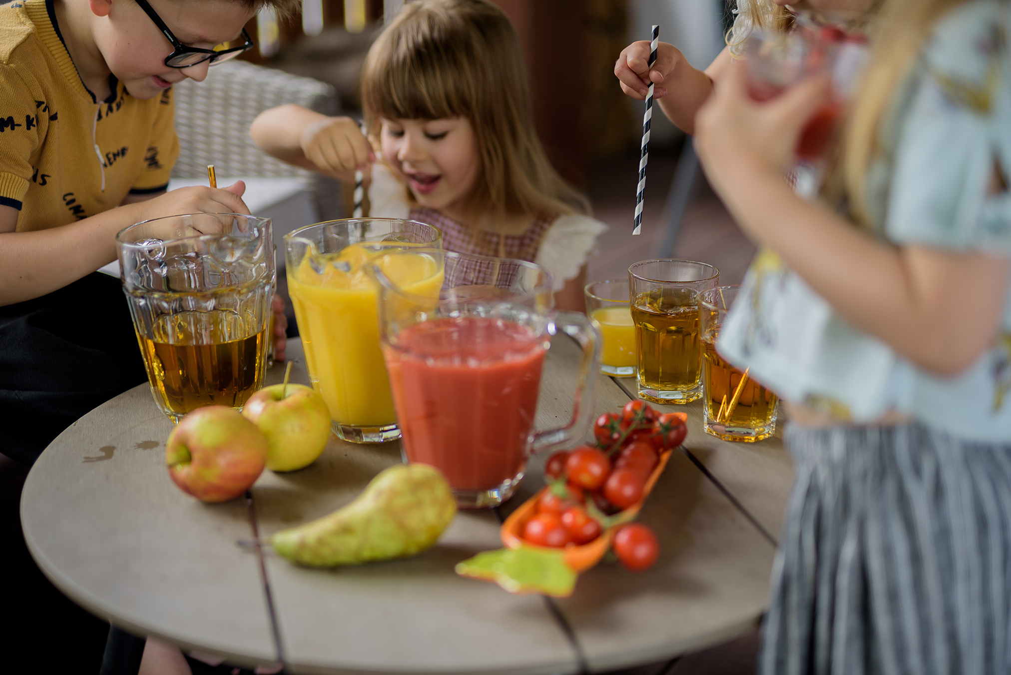 Chociaż sok z jabłek nie raz jest najlepszą nagrodą, to fajną zabawą jest też mieszanie soków o różnych kolorach i smakach. To ulubiony challenge Tomika na każdej imprezie. Robi mix w szklance i próbuje, który wariant najlepiej smakuje. Nie zabraniam mu, bo przez zabawę nałyka się też trochę witamin. Spożywając porcję soku dostarczmy witamin i antyoksydantów i wielu innych wartościowych substancji odżywczych. Sok charakteryzuje się podobnym poziomem składników odżywczych, co owoce lub warzywa, z których został wytworzony. Jest to produkt, który nie może zawierać konserwantów, słodzików, sztucznych barwników ani aromatów. Soki owocowe, pomidorowe oraz 100% warzywne także nie mogą zawierać dodatku żadnych cukrów (np. glukozy, fruktozy, sacharozy, syropu glukozowo – fruktozowego). Dlatego, kiedy wybieram sok 100% wiem, że daję dzieciom to, co dobre. Dodatkowo ze względu na ich płynną formę mogą stanowić wygodny i wartościowy element diety. A jak wiadomo, każdej matce trochę wygody się należy!