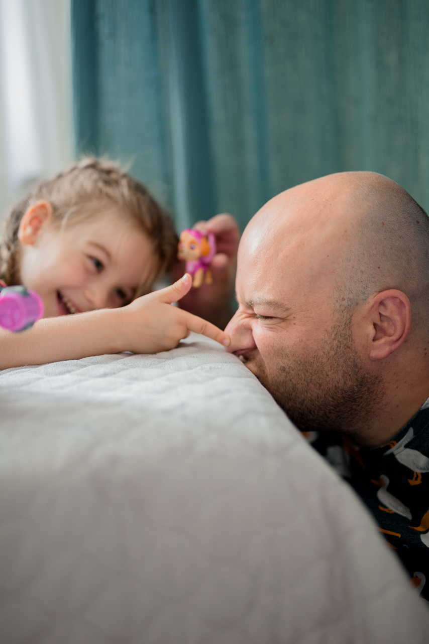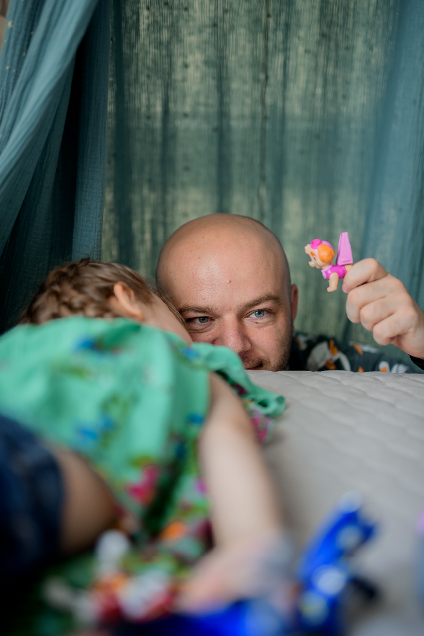 Są dni (a nawet tygodnie) Kiedy w swoim matczynym kieracie zaczynam zapominać, co tak naprawdę jest dla mnie ważne. Zaczyna mi się wydawać, że moim dzieciom bardziej przyda się czysta podłoga czy lśniący kibelek niż mama czytająca książkę. Bo szczerze mówiąc po całym dniu sprzątania, prania i gotowania moim marzeniem NIE JEST czytanie książeczek. A to smutne jest, bo chciałabym. Nie mam już jednak siły. A kiedy ja nie mam już siły wysyłam tatusia, licząc na to, że on być może ma jakoś więcej nadludzkich mocy o tej porze. Mam takie wrażenie, bo przecież cały dzień nie było go w domu, to w końcu ma chyba COŚ do nadrobienia? I zawsze, kiedy przychodzi czas na zabawę ja AKURAT mam pełne ręce roboty, więc znów często tatuś idzie na ratunek.