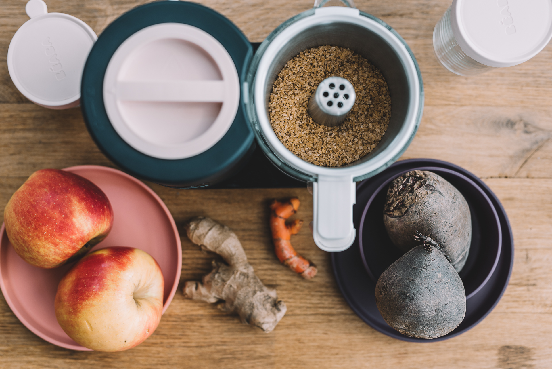 50 g kaszy bulgur ugotuj w Babycook na parze używając koszyczka do gotowania kaszy. Do koszyczka z kaszą dodałam cząstki burak.a Tak ugotowaną kaszę zalałam dodatkowo bulionem warzywnym i posypałam pietruszką. Naturalny smak buraka to coś, co Antoś uwielbia, nie potrzebuję go dodatkowo przyprawiać.